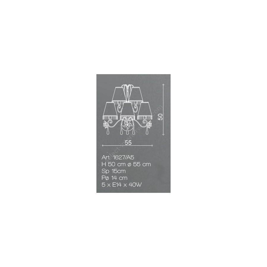 Leuchtmittel: 5xE14x40W| Abmessungen (HxBxT): | cm: 50x55x15 / inches: 19.69"x21.65"x5.91" |
