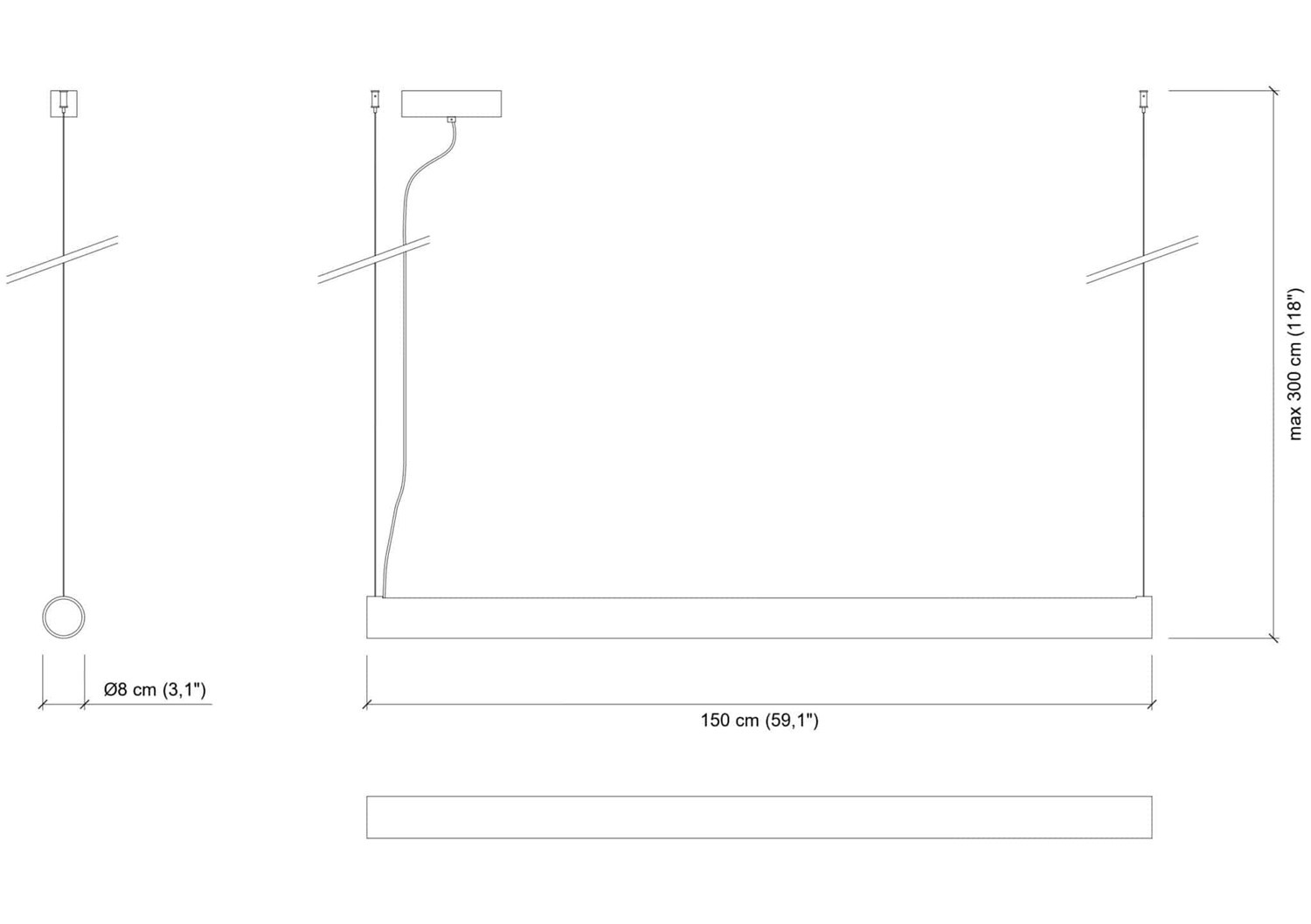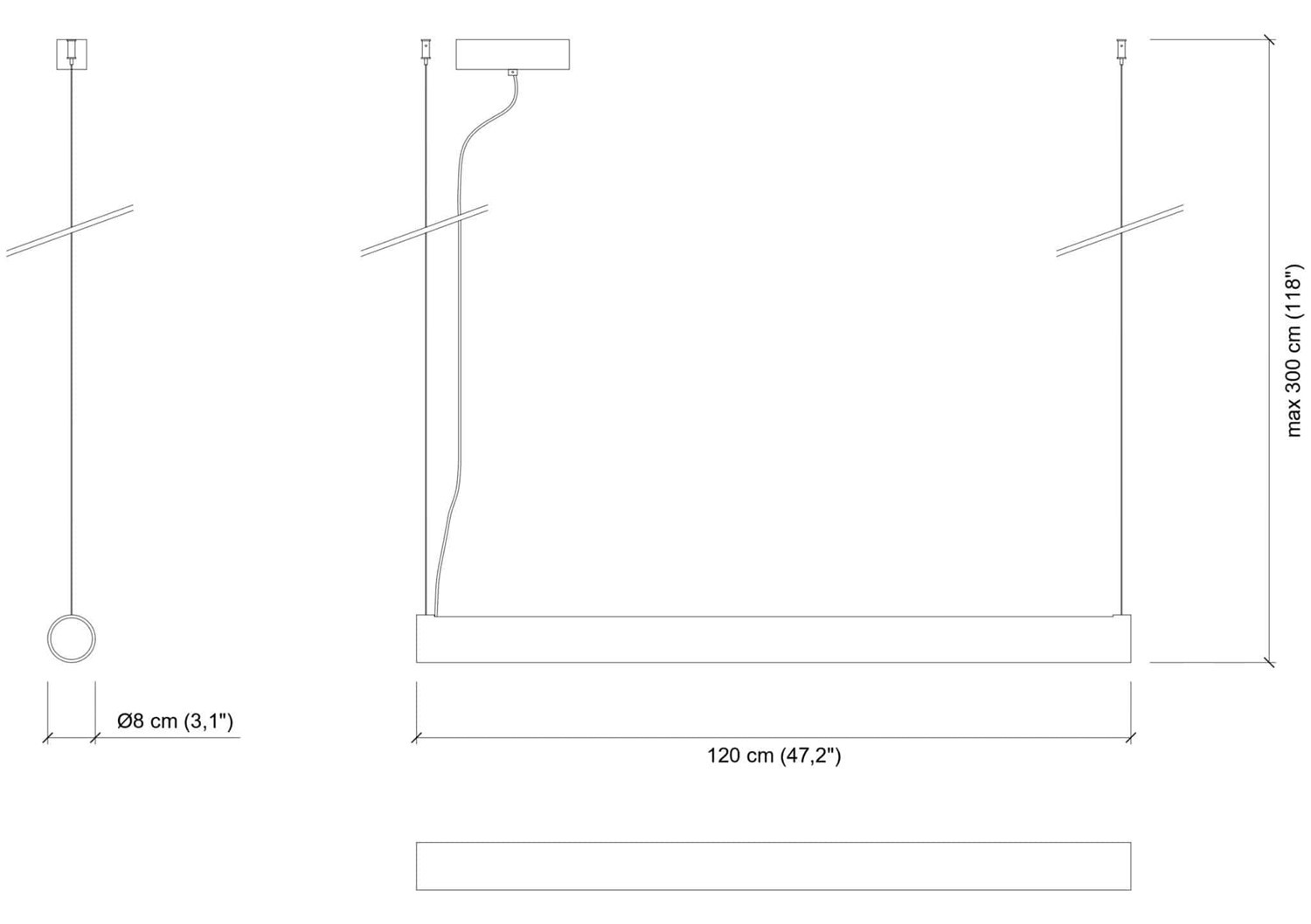 Maximum pendant heightmax 300 cm / 118.11""