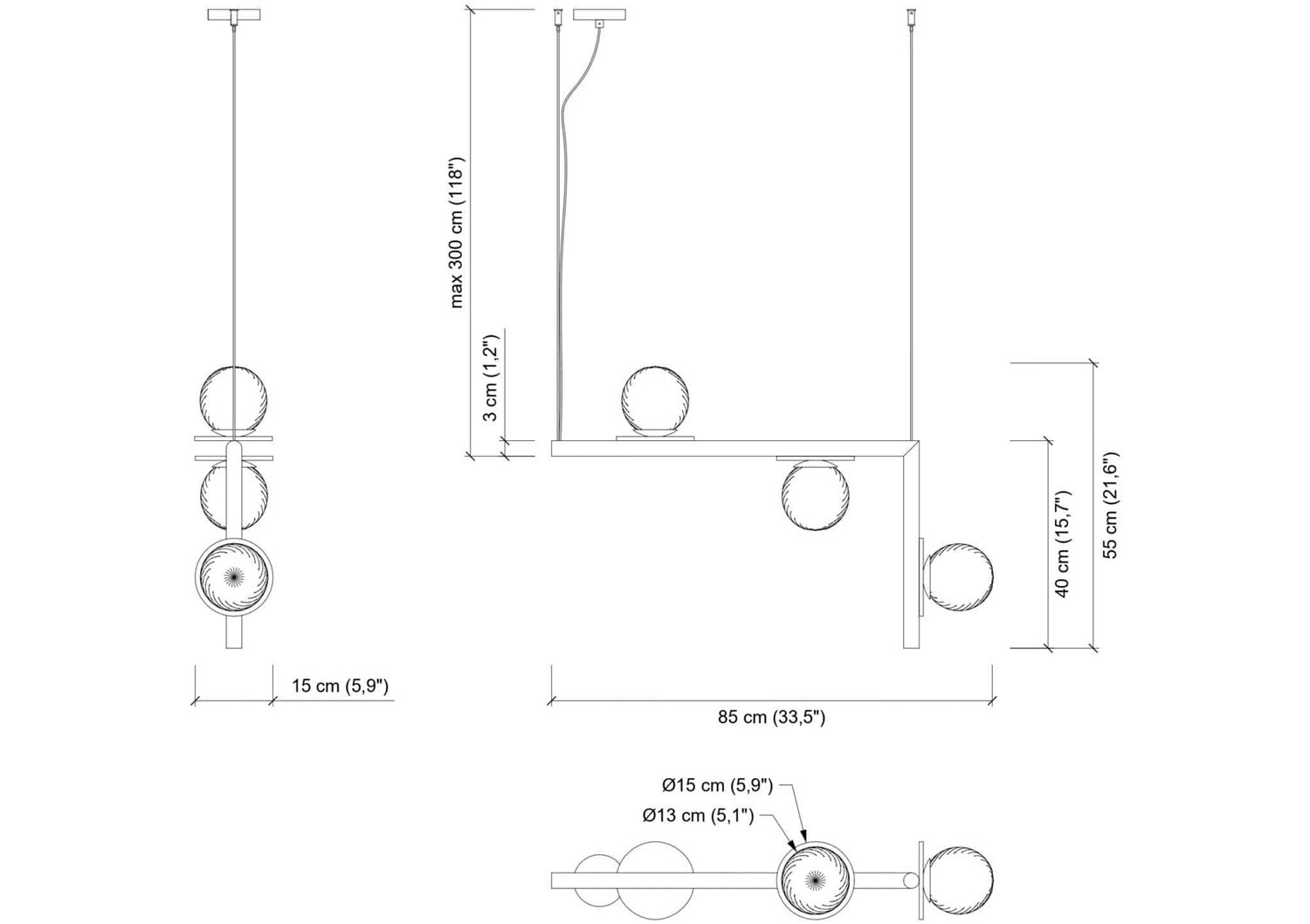 | Total pendant height | max 300 cm / max 118.11"" |