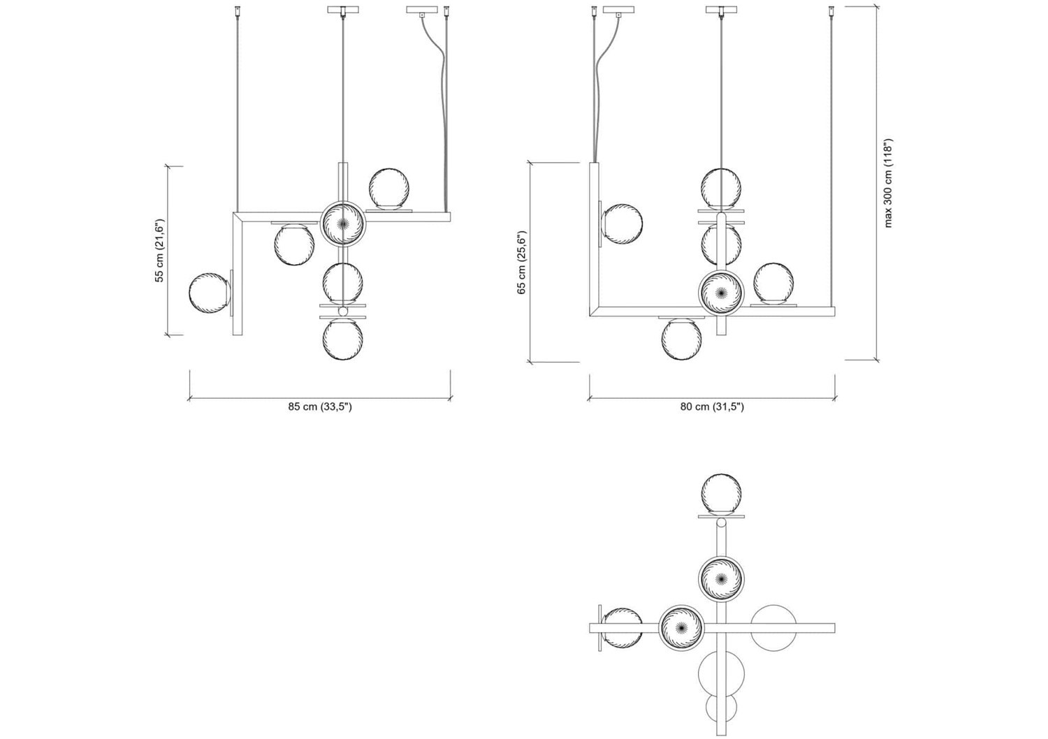 | Maximum hanging height | max 300 cm / 118.11"" |