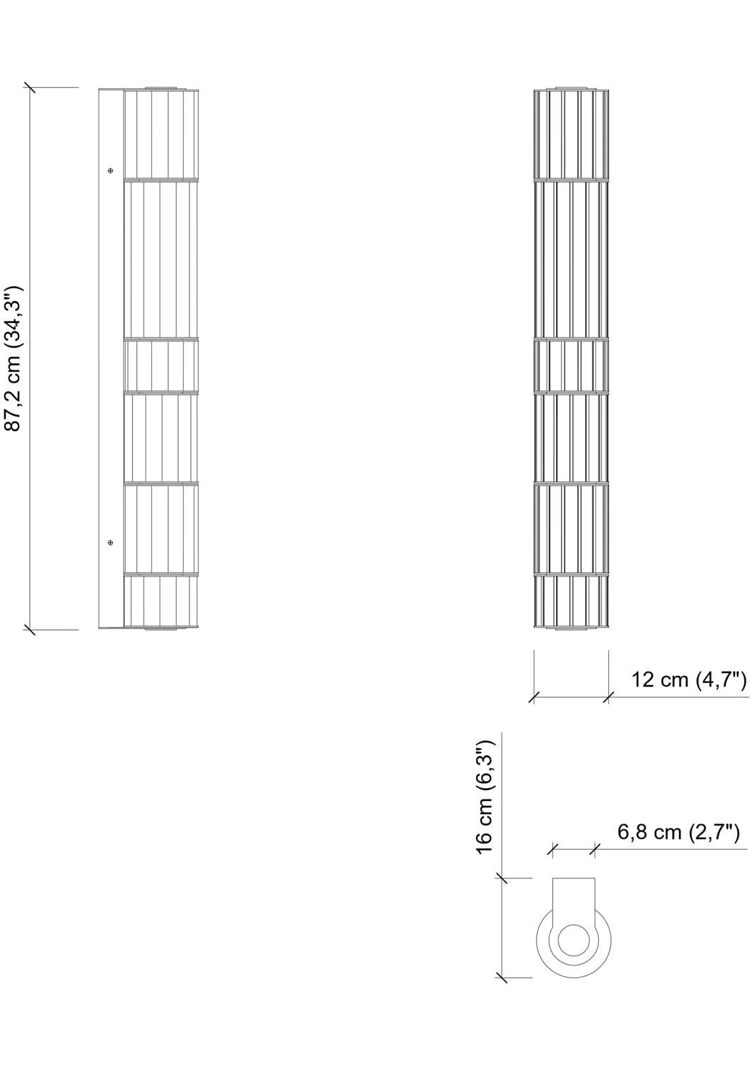 | Dimensions (HxWxD) | cm: 87.2x16 / inch: 34.33""x6.3"" |