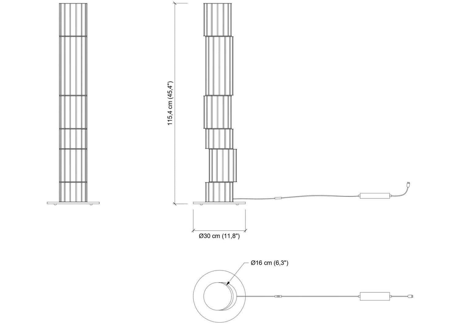 | Dimensions (HxWxD) | cm: 115.4x30 / inch: 45.43""x11.81"" |