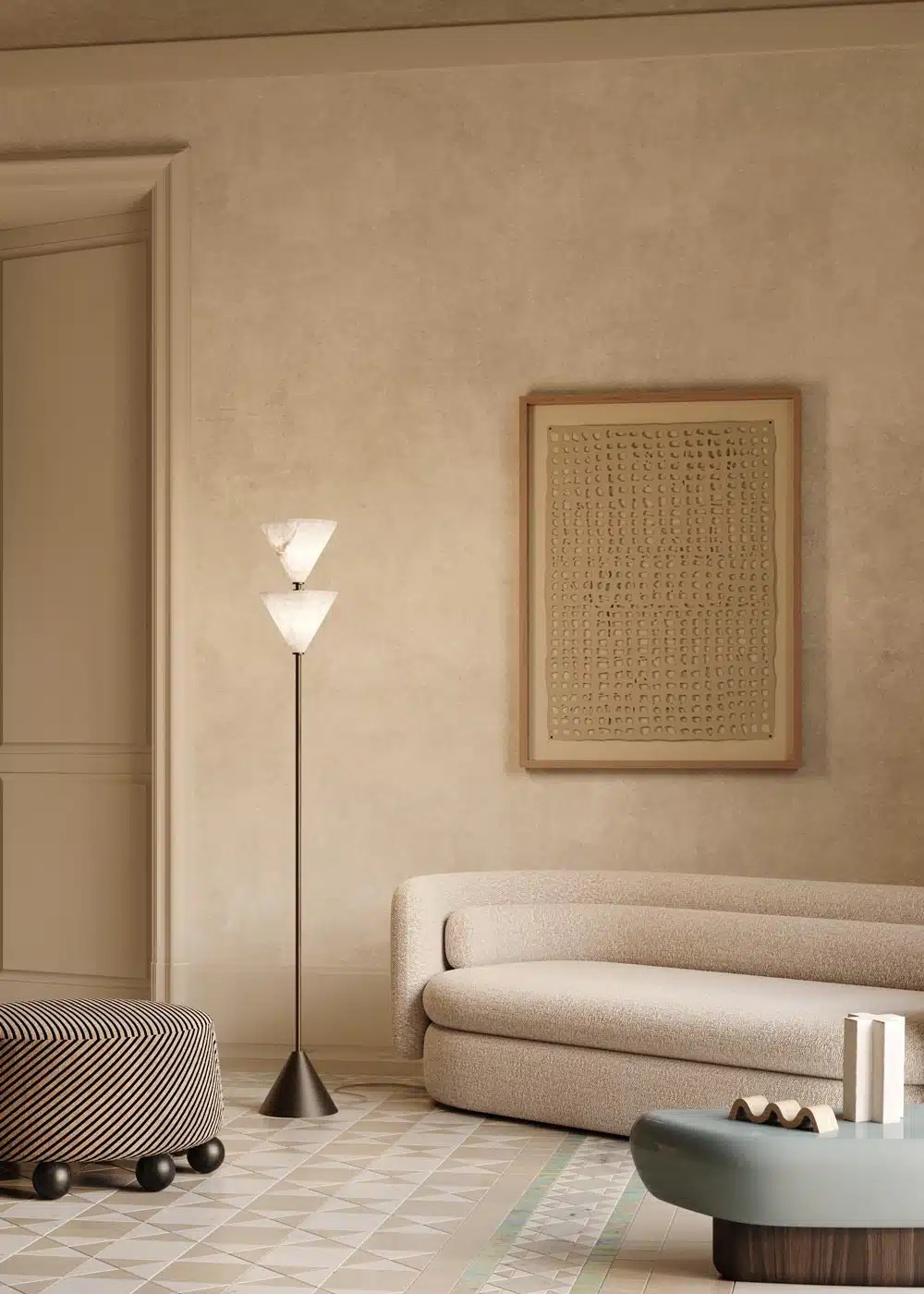 The 'Apadana' lamp draws inspiration from the imposing columns of Darius's Palace in ancient Persia, considered among the most majestic of antiquity. This refined piece of design recalls the elegance and grandeur of classical architecture, translating it into a modern and evocative form. 'Apadana' is distinguished by its interplay of volumes and chiaroscuro, which, while captivating, maintains a delicate and subtle impact.