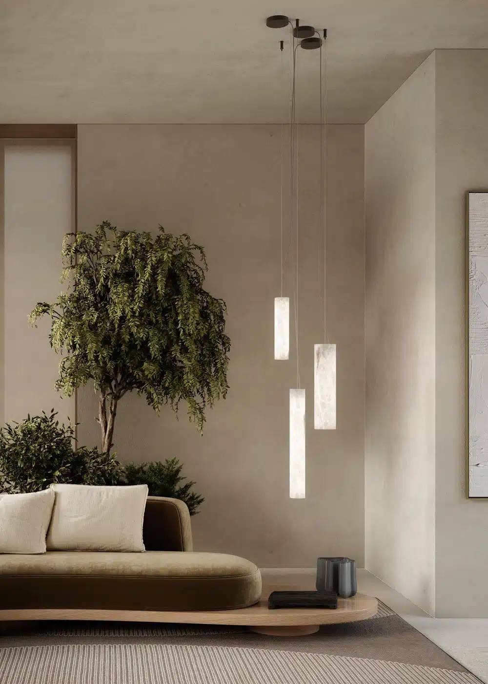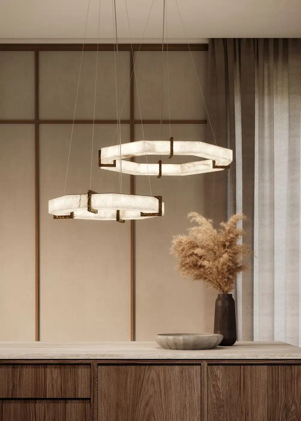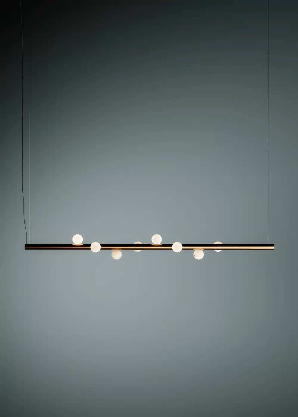 The name Demeter, goddess of flora, perfectly reflects the distinctive shape of this Italian Alabaster series. The spheres, made of pure, hand-turned alabaster, resemble fruit hanging from the branches of a hypothetical tree of light. These brilliant elements stand out between heaven and earth and symbolize the richness that only Mother Nature can offer us.