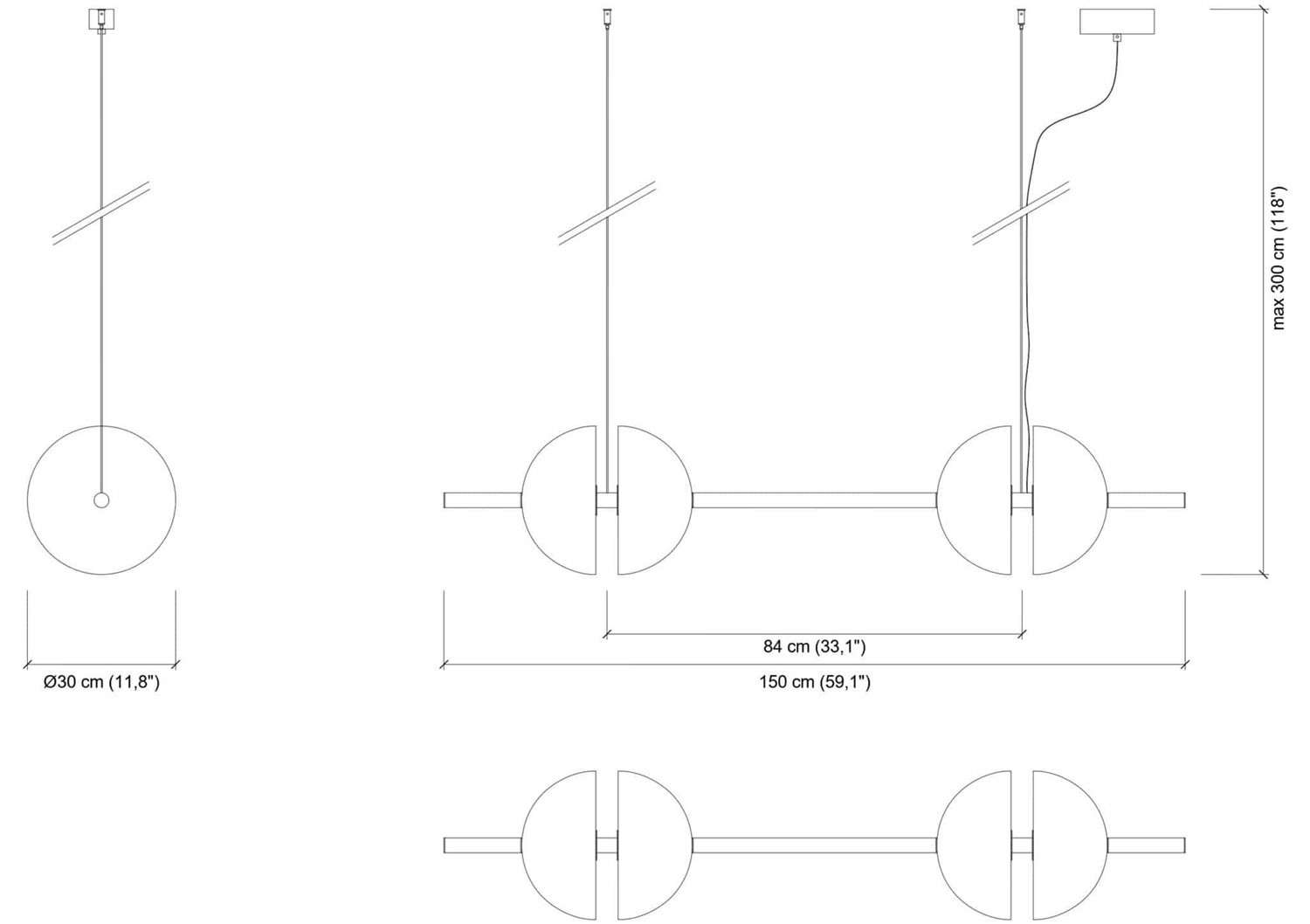 | Maximum hanging height | max 300 cm / 118.11"" |