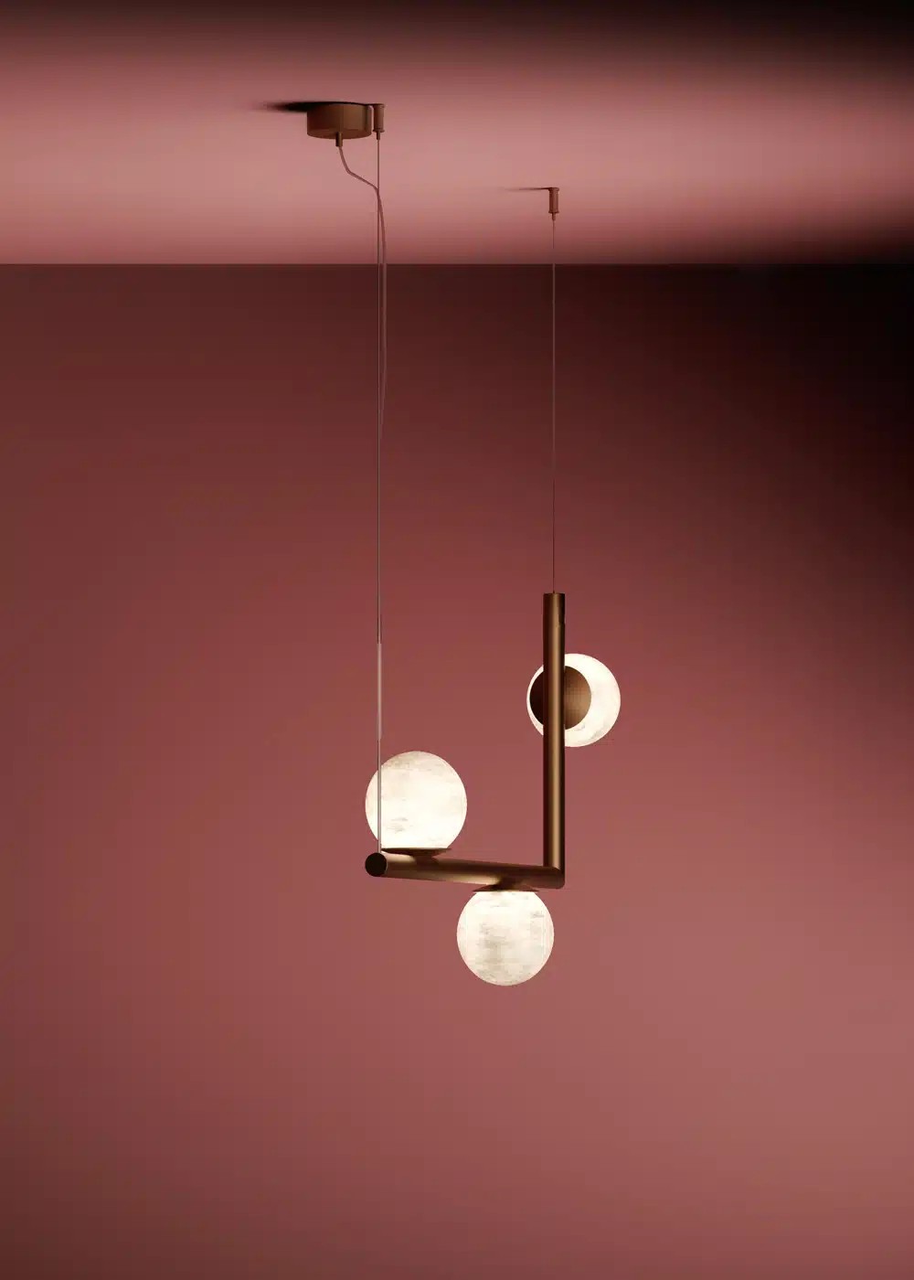 Ophion was the first king of the Titans and the heavens, a figure shrouded in mystery about whom little is known. His greatness has always been associated with that of his wife Eurynome, and his life was marked by this unbreakable bond. Similarly, this series is composed of horizontal and vertical lines delicately intertwined with precious alabaster spheres.