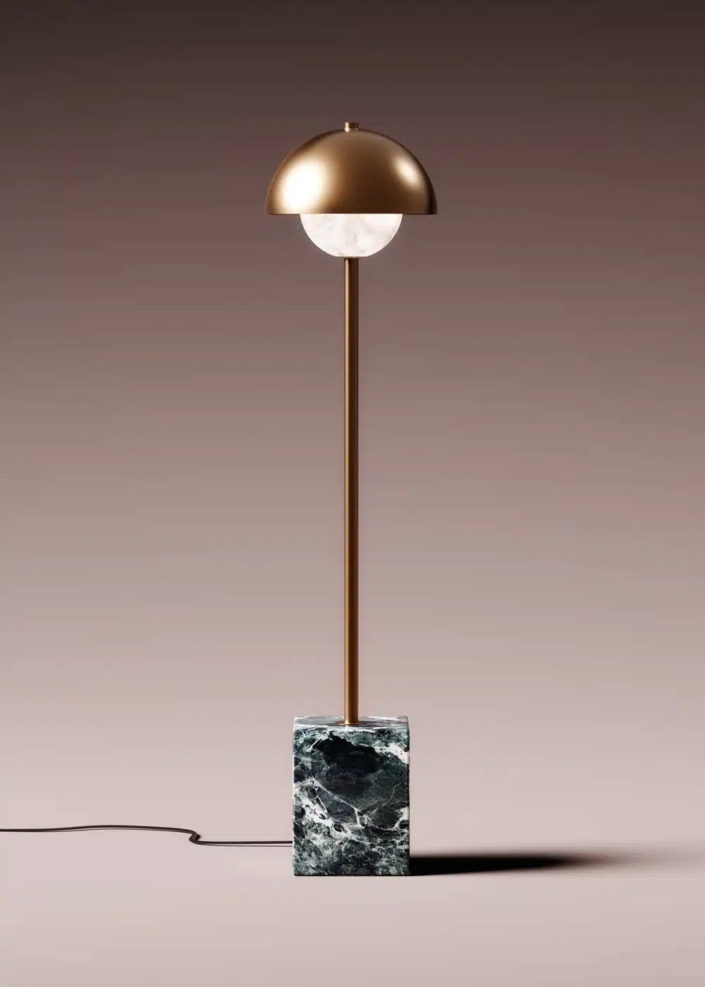 Alabaster domes of varying diameters and tubular elements of varying widths lend dynamism to this exclusive piece, maintaining a perfect balance of style. Named Apollo after the Greek god who pulled the sun chariot, the series draws inspiration from this peculiarity; a metal structure supports a series of luminescent hemispheres.