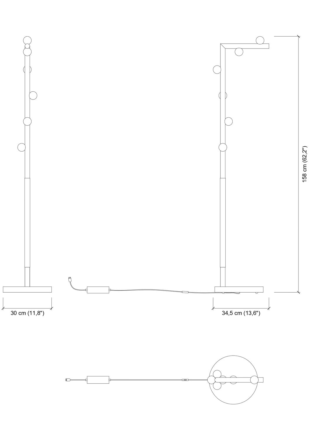 | Dimensions (HxWxD) | cm: 158x30 / inch: 62.2""x11.81"" |