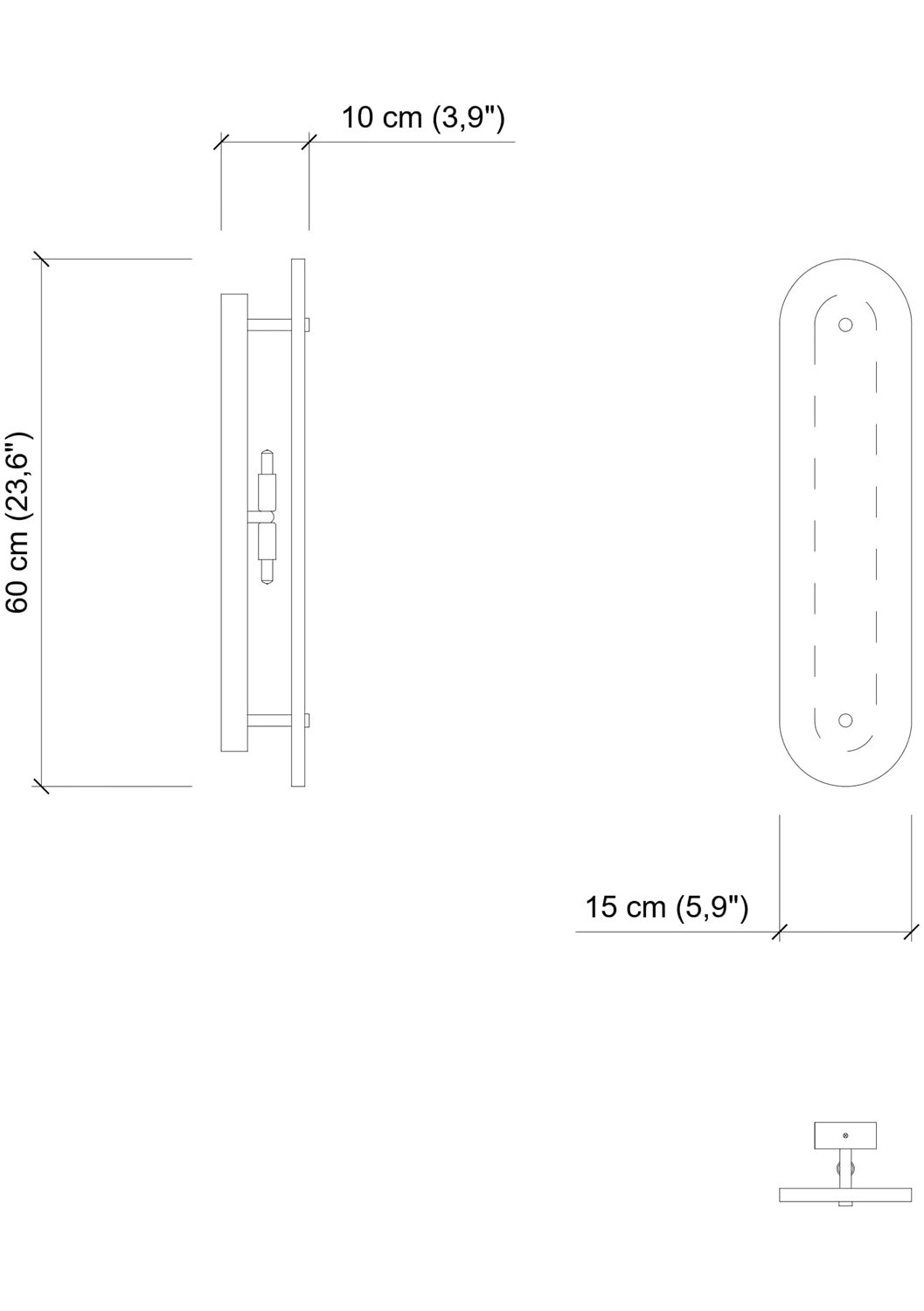 Dimensions (HxWxD)cm: 60x15x10 / inch: 23.62""x5.91""x3.94""