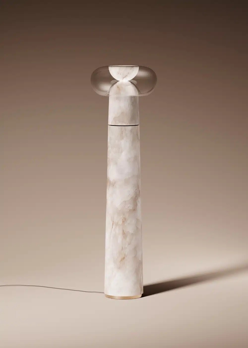 The 'Fuji' lamp represents the heart of the collection, where glass and alabaster blend in perfect balance, playing with volumes and light to create an elegant and contemporary atmosphere. The combination of the delicacy of glass and the solidity of alabaster creates a distinctive object, capable of telling a story of tradition and innovation.