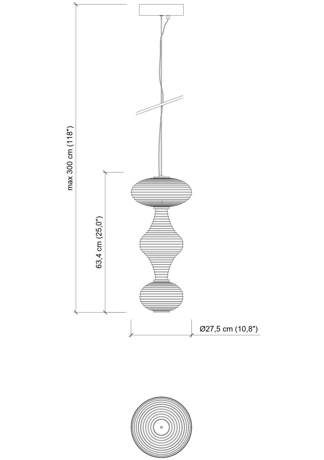 | Max pendant height | 300 cm / 118.11"" |