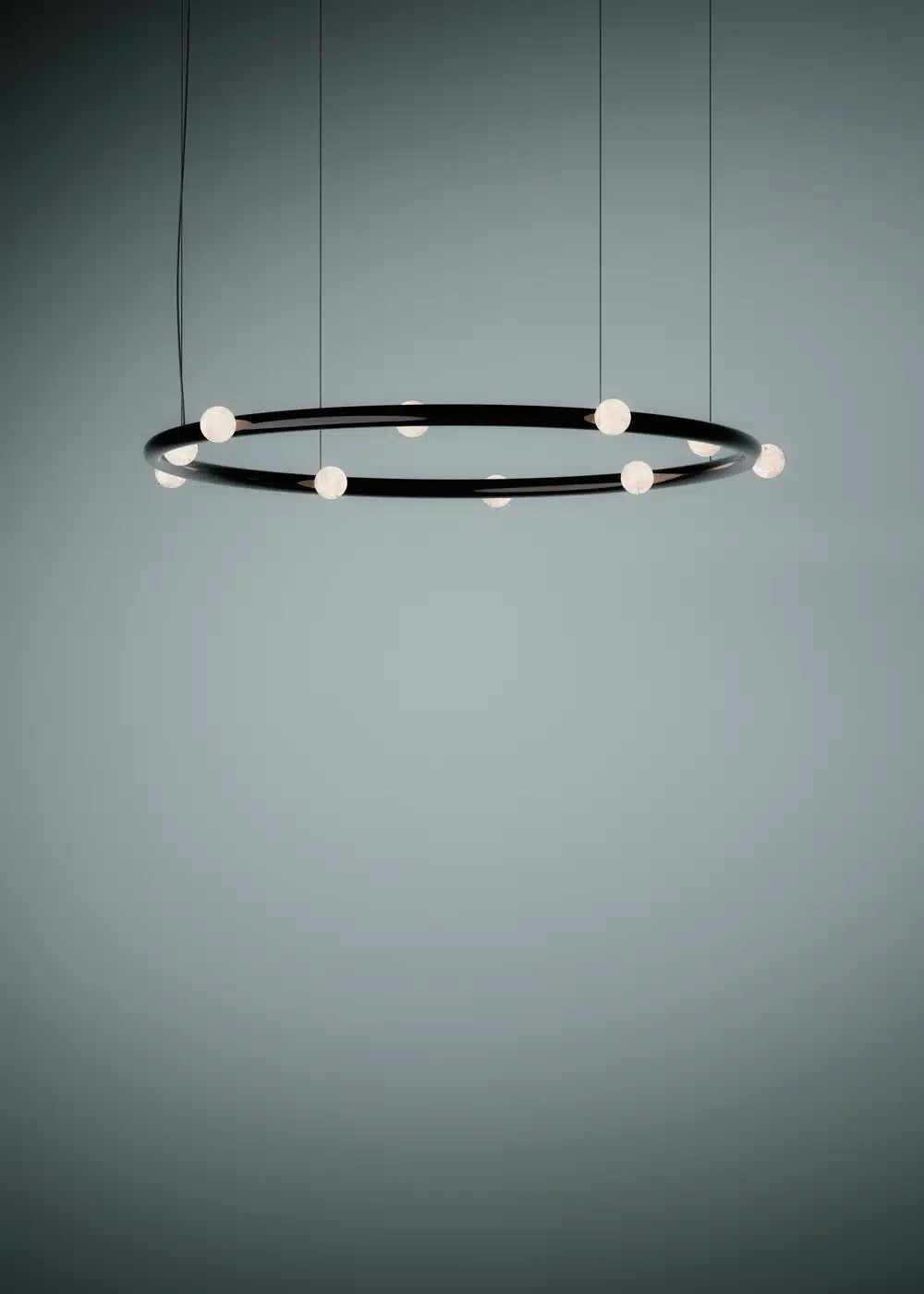The name Demeter, goddess of flora, perfectly reflects the distinctive shape of this Italian Alabaster series. The spheres, made of pure, hand-turned alabaster, resemble fruit hanging from the branches of a hypothetical tree of light. These brilliant elements stand out between heaven and earth and symbolize the richness that only Mother Nature can offer us.