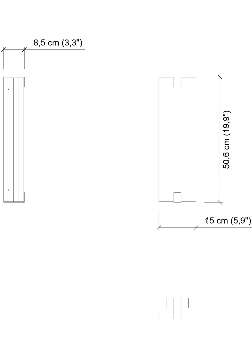 | Dimensions (HxWxD) | cm: 50.6x15x8.5 / inch: 19.92""x5.91""x3.35"" |