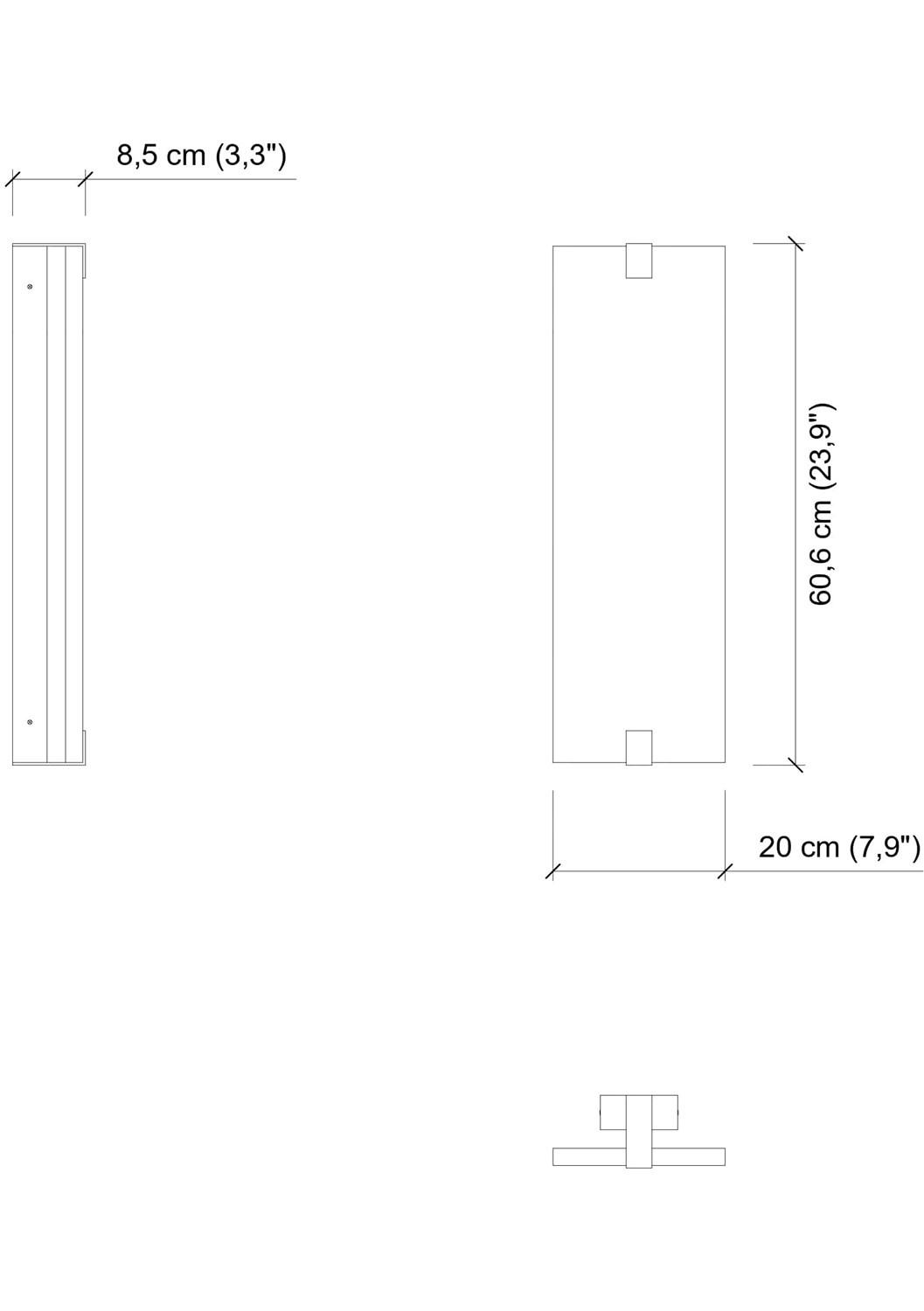 | Dimensions (HxWxD) | cm: 60.6x20x8.5 / inch: 23.86""x7.87""x3.35"" |