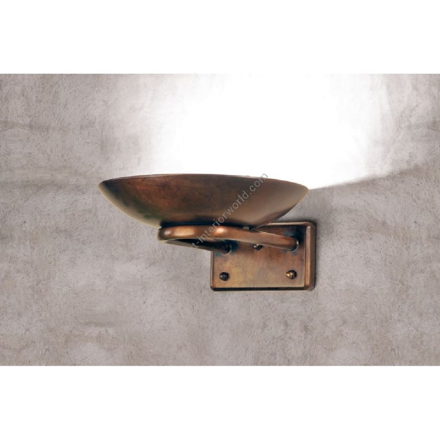 The wall lamp is made of cast brass, which is subsequently aged. It emits a pleasant light, ensuring excellent visual comfort.