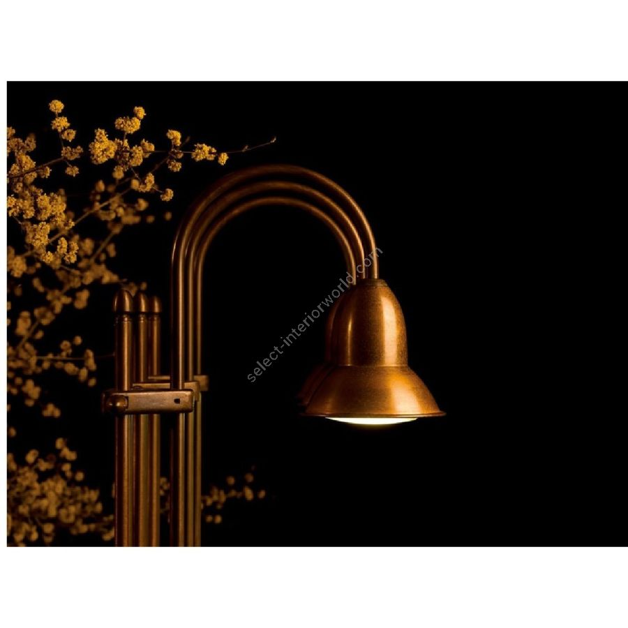 Outdoor lighting structure that consists of one basic module and two aged copper reflectors.