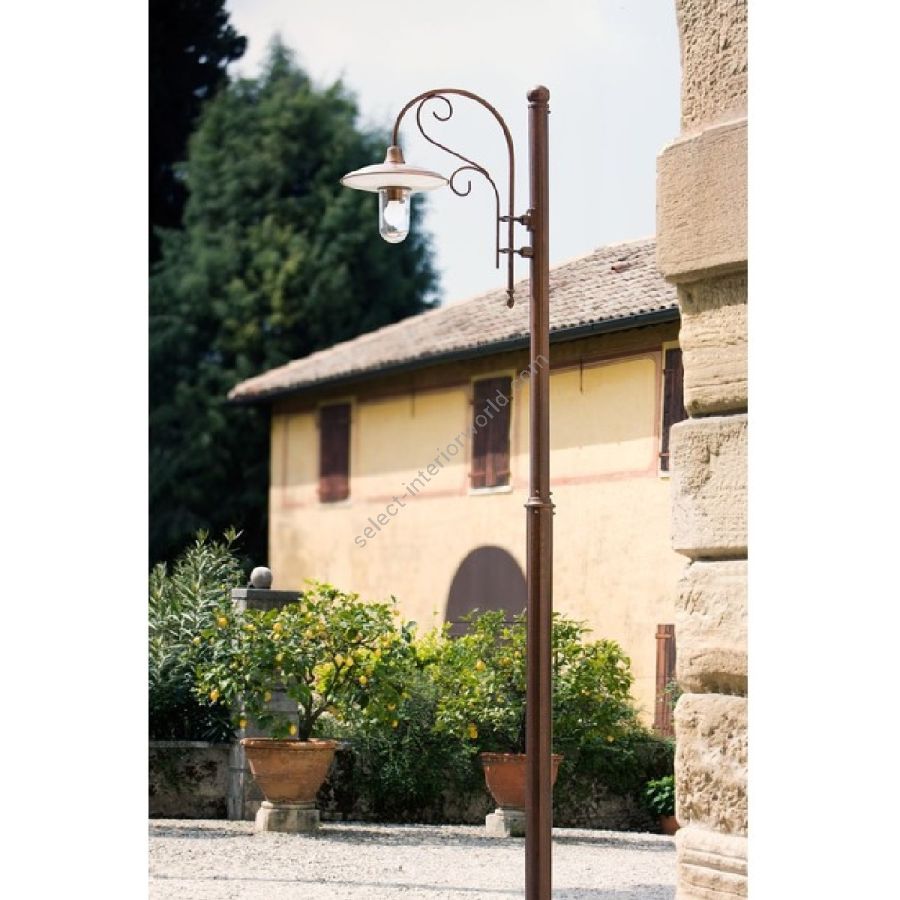 Outdoor poles of various sizes to match with the avenue and garden fixtures presented in the catalog. They are made with antiqued brass tubes joined together by tapering in later antique brass casting. They are suitable for lighting all those spaces that require a particular lighting style where these objects become elegant architectural details.
