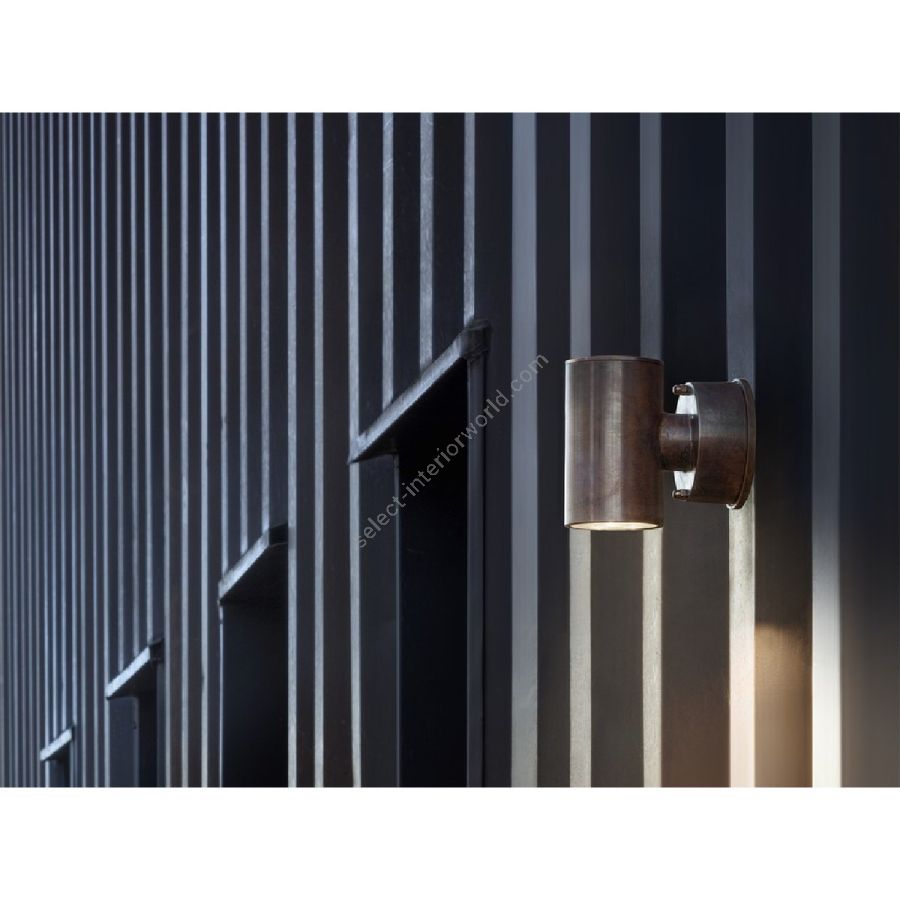 The Abarth collection proposes a wall mount outdoor lamp, with single or double lights. The wall lamp is available in brass finish, subsequently aged; the finish is obtained through a manual aging process, which accelerates but doesnt replace their natural oxidation, which can continue later.