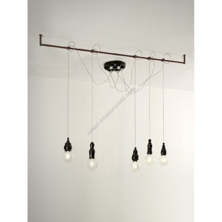 This solution is indicated to create, as desired, a line of pendants, on rigid support in antiqued brass which has standard dimensions 1800 mm. x 115 mm.