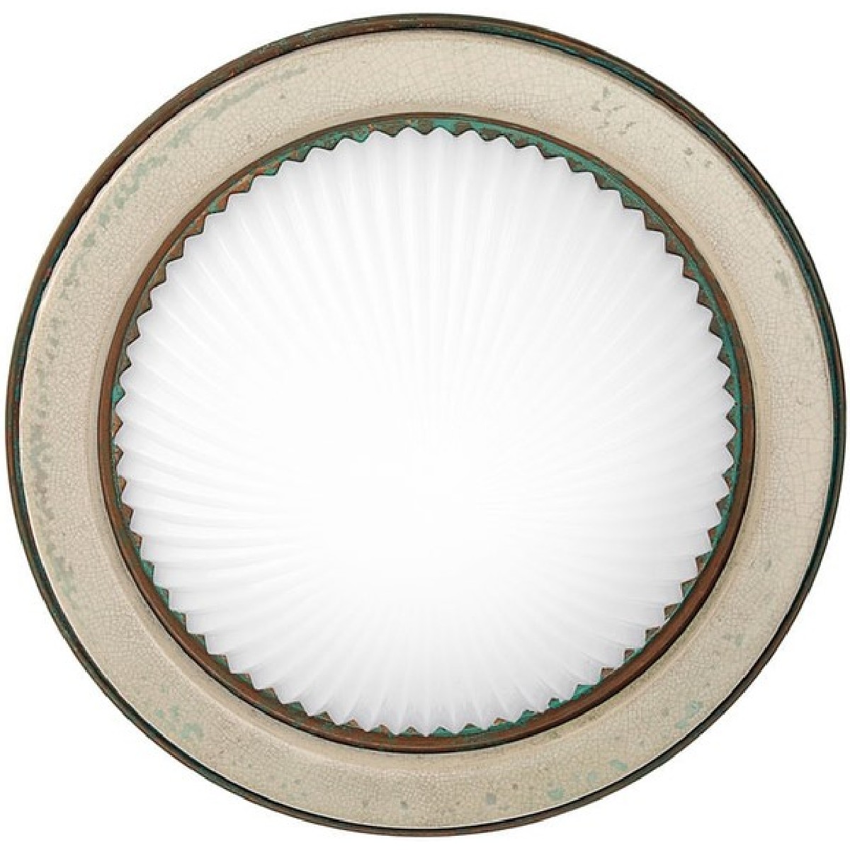 Ceiling lamp made of aged copper base, shiny white-milk diffuser and ceramic engobed ring.