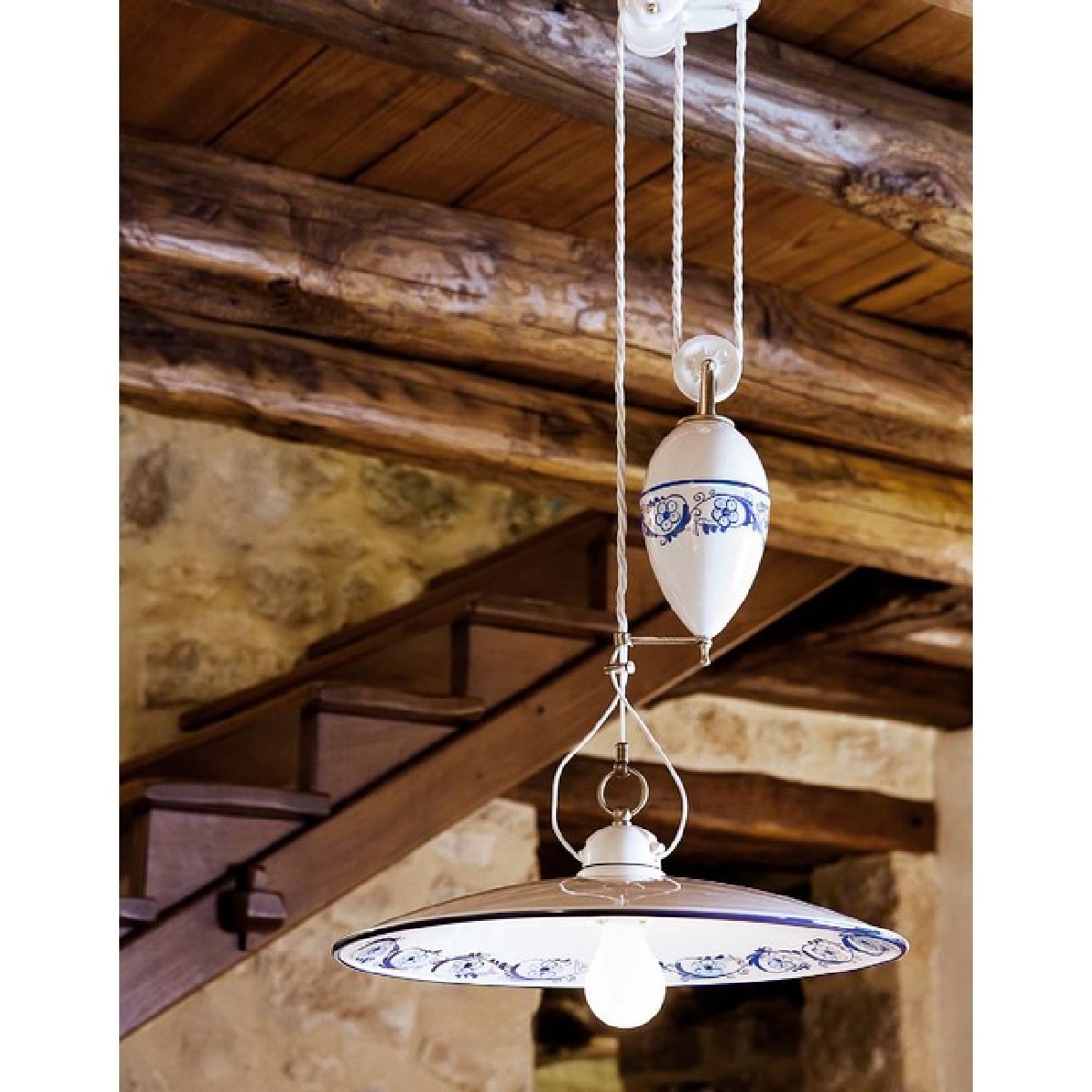 Ceiling and wall lampCeiling and wall lamp available in white glazed ceramic, coloured line or decorated ceramic and cotto ceramic also in white glazed inside version. These solutions, perfect above a table or in a hall, grace the room with warm, enveloping light.