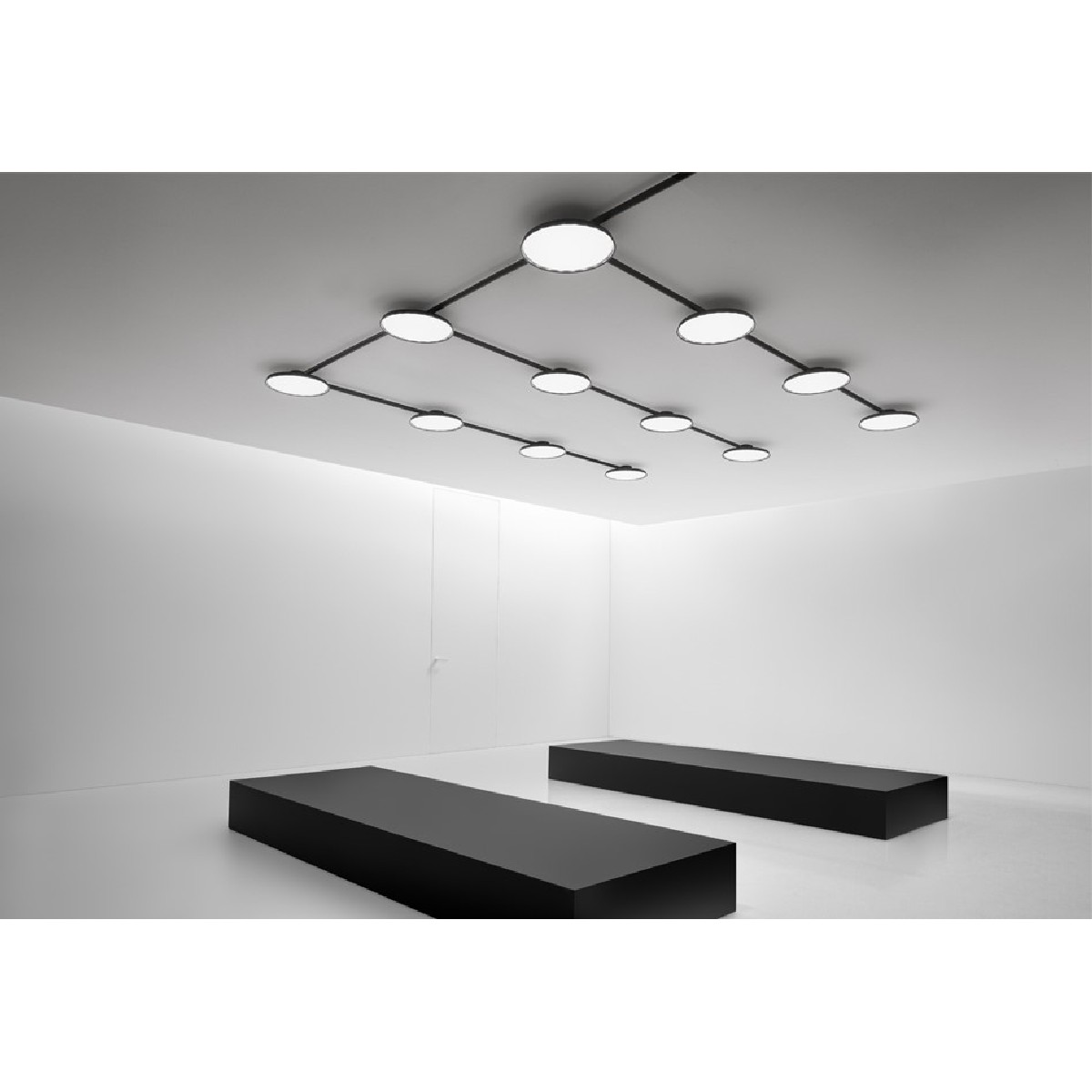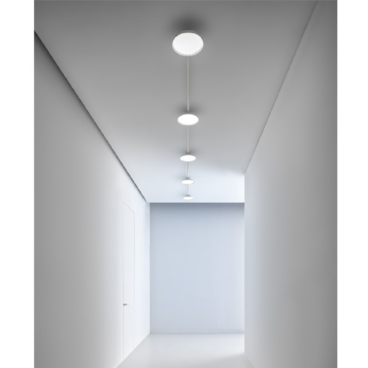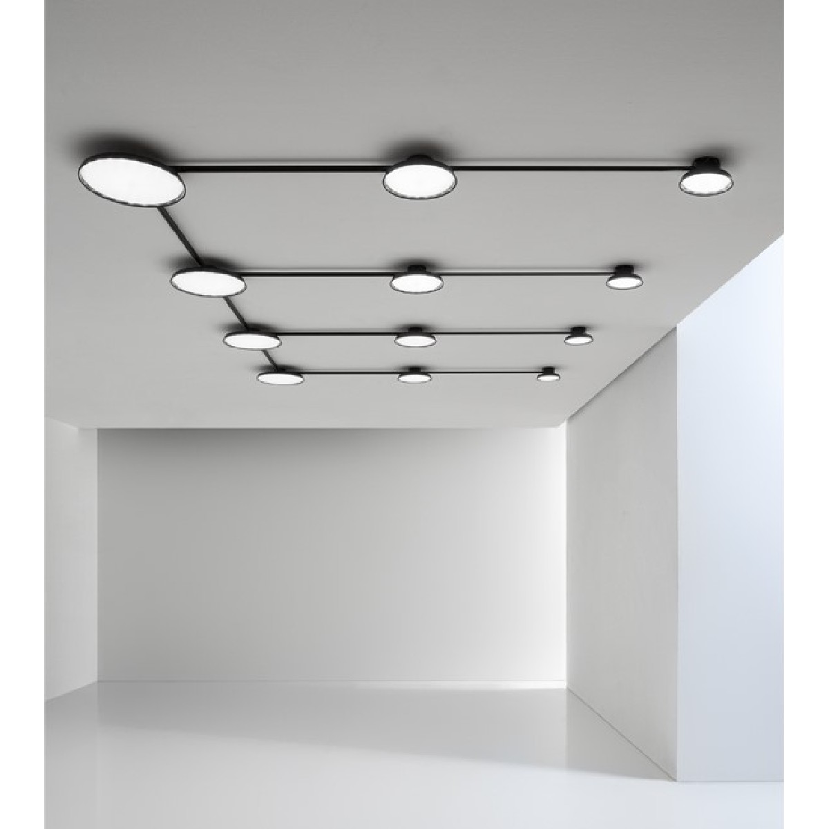 This interesting indoor system is an integration of the homonymous series. MYMOONS ceiling lamp or pendant become refined points of light inside the system and must be integrated with 16, 22 or 28 mm conduits , that do not require additional accessories for their connection. It is however necessary to specify, at the time of ordering , the rose output/s you intend to keep open for the conduits connection and its diameter. The available finishes are the enveloping matte white or the sophisticated matte black.