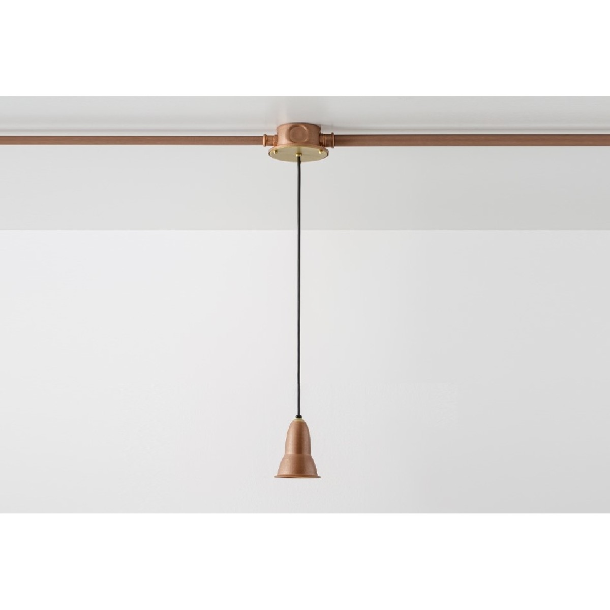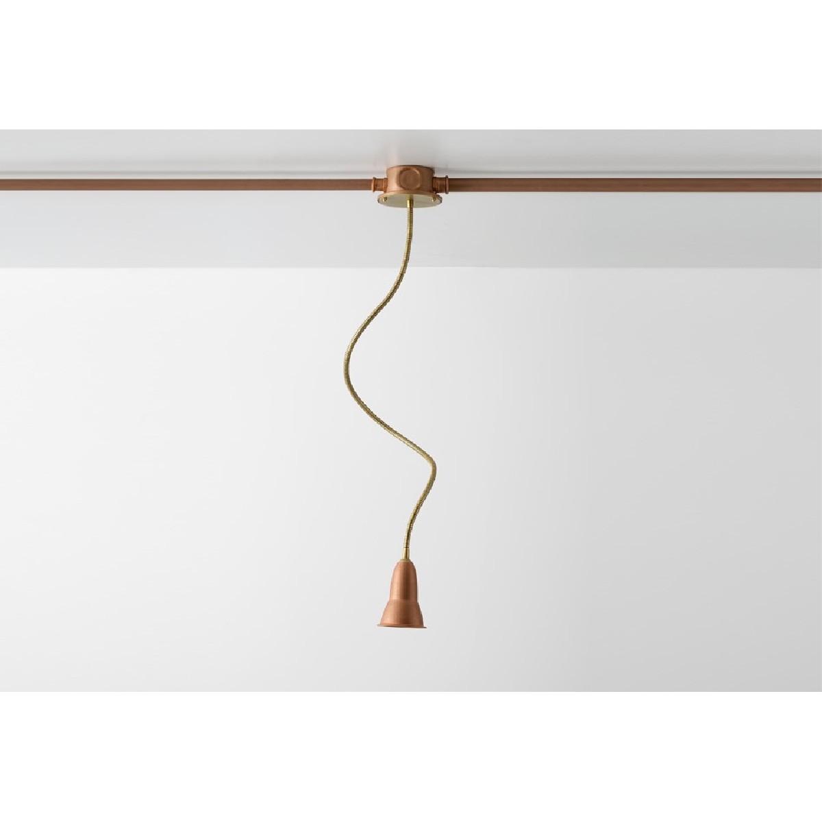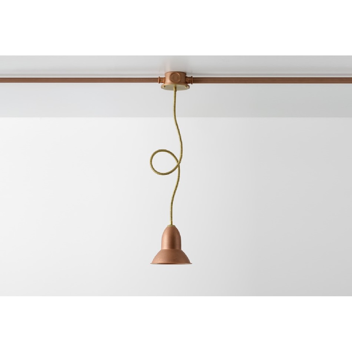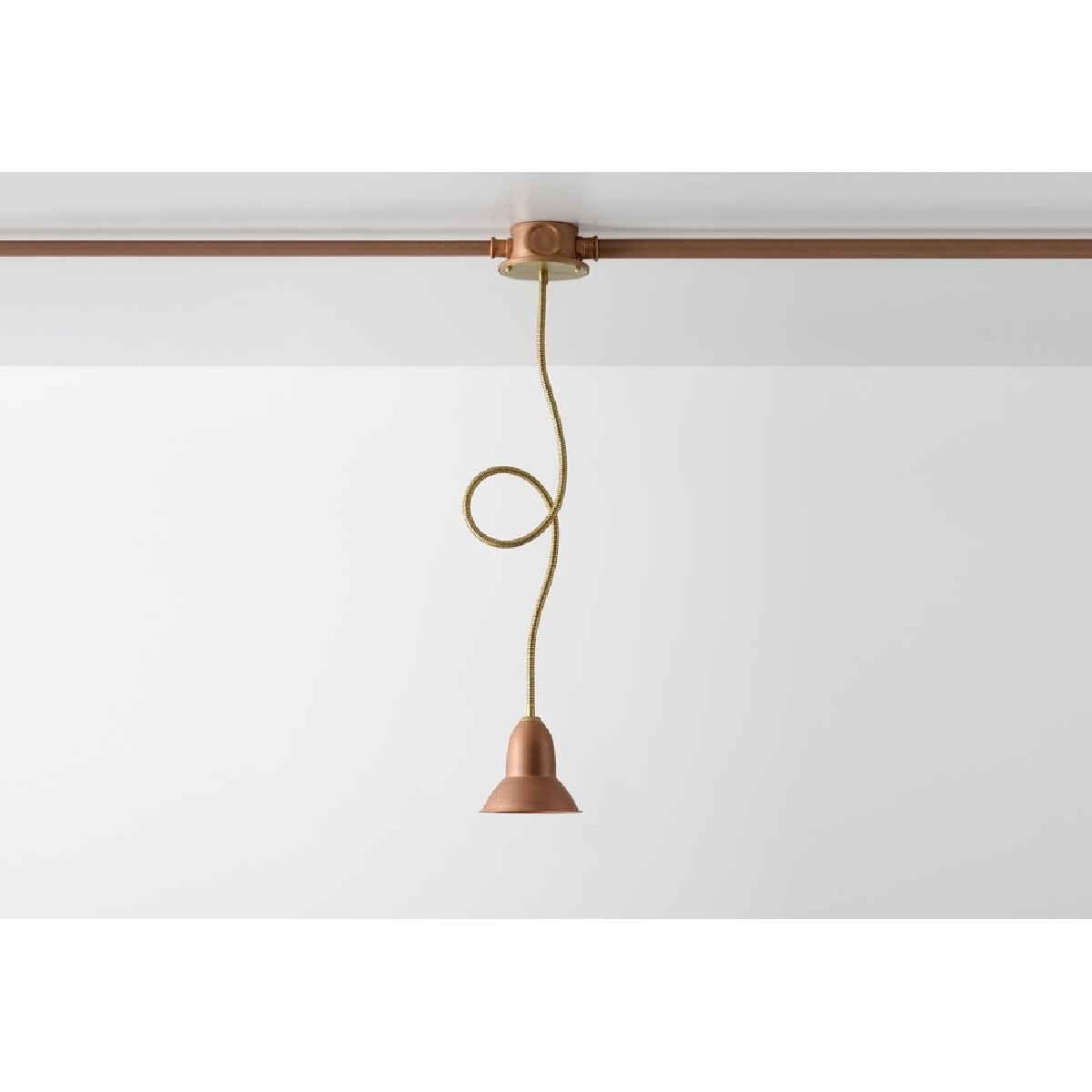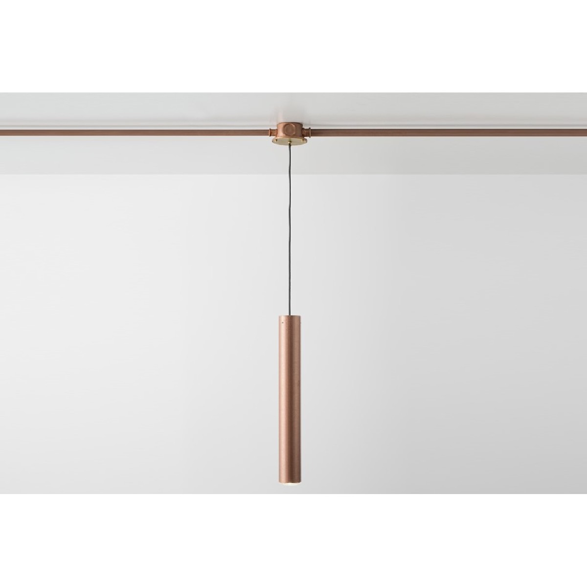 The indoor system present and develop the new finish that Aldo Bernardi defines as martellato copper. It is a completely manual finishing process, the result of which is a pleasant opaque and silky appearance. The fulcrum of the MULTIBOX system is the multi-box item to combine with specific accessories for the construction of a conduits system. The multi-box item has different functions (junction box, switch, rose), and is composed of a brass cover and a copper base available It has 4 outputs for connection with 16.22 or 28 mm. in diameter. When ordering it is necessary to specify which outputs you wish to open and of which diameter. Each MULTIBOX can have different diameter outputs. All fittings, accessories and fixtures to be combined with the MULTIBOX system, are in martellato copper and are to be specified when ordering. The MULTIBOX system can also be combined with our TUBE or CLEMATIDE lines for the creation of lighting points within the system itself. The suspensions can be made with a support cable or with a flexible tube and both are available only in the new martellato copper finish, above mentioned. When ordering, the codes of the items you wish to combine are to be specified.