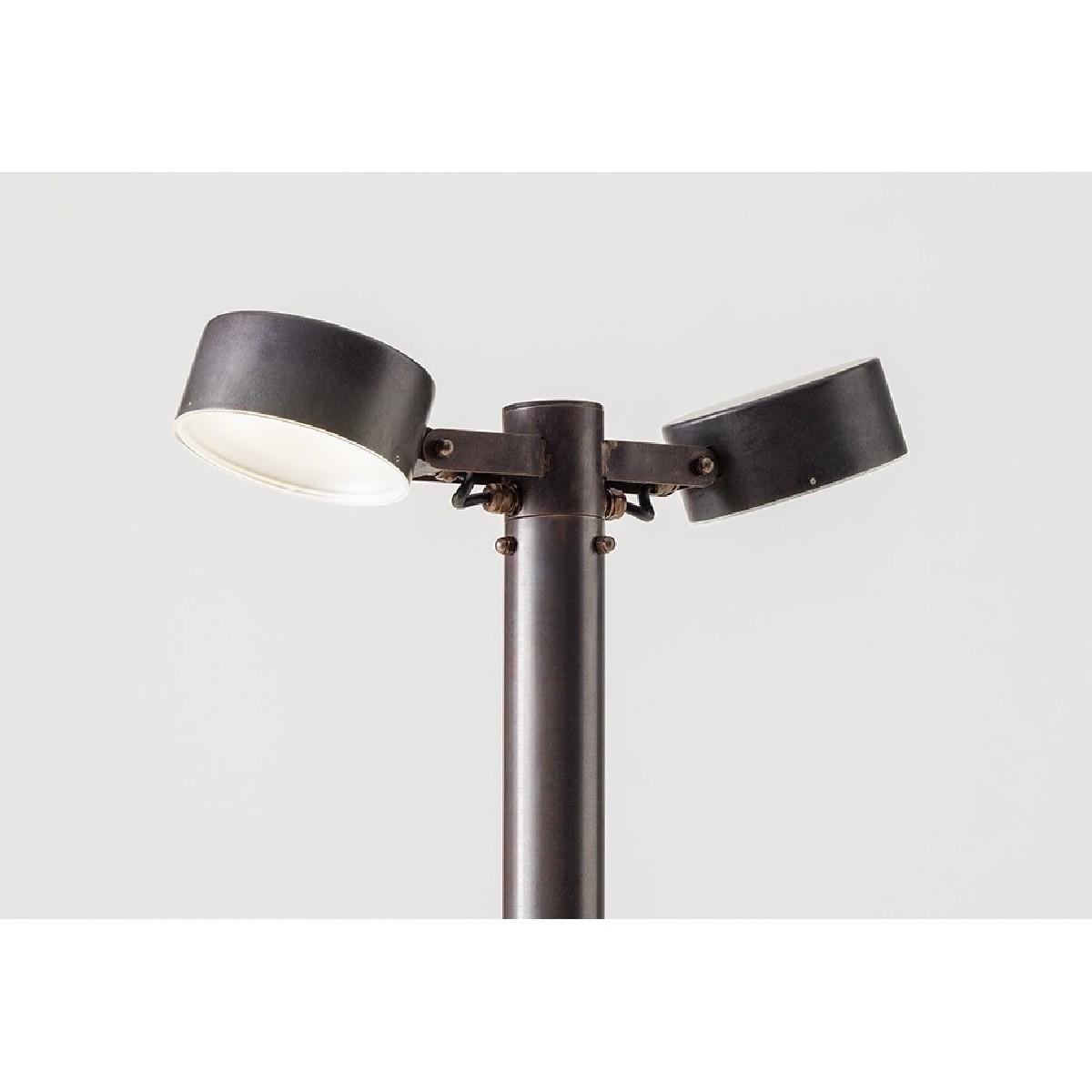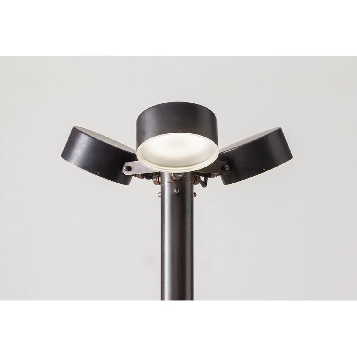 The pole-top luminaire is available in single, double at 180 or triple at 120 lluminaire. It can be adjusted vertically by 180 and is available in an antique brass finish.Its an element of elegance for the garden architecture; its the ideal way for illuminating any open spaces contest, pathways, flower beds, but also terraces elegantly furnishes any open space context.
