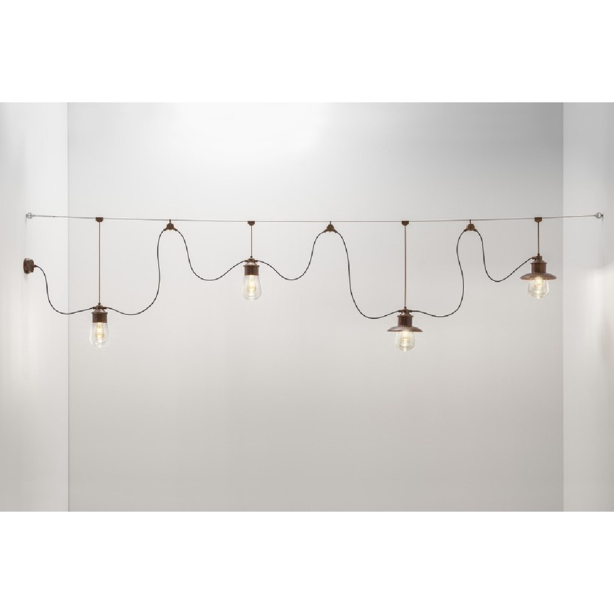 The GUINGUETTE head light is a structure where, using special accessories, a series of suspensions are placed on stainless steel cable AISI 316, provided with a central support rod and aerial hooking for their safe anchoring.