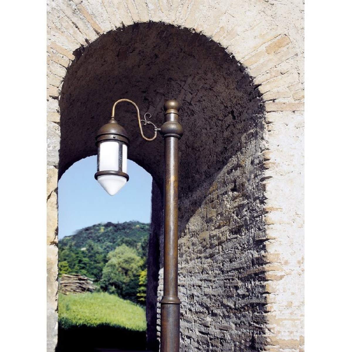 Wall and pole-head fittingThe wall fitting can be integrated with all those accessories on page 432 of this catalogue, to be ordered separately, suitable for the surface wiring system, that for years Aldo Bernardi successfully proposes. The fitting for pole head should instead be customized with poles and / or with basements present from page618 on page 627 of this catalogue, to be ordered separately. It naturally integrates with gardens, avenues, ancient villages or renovations by its minimalist design aesthetic.