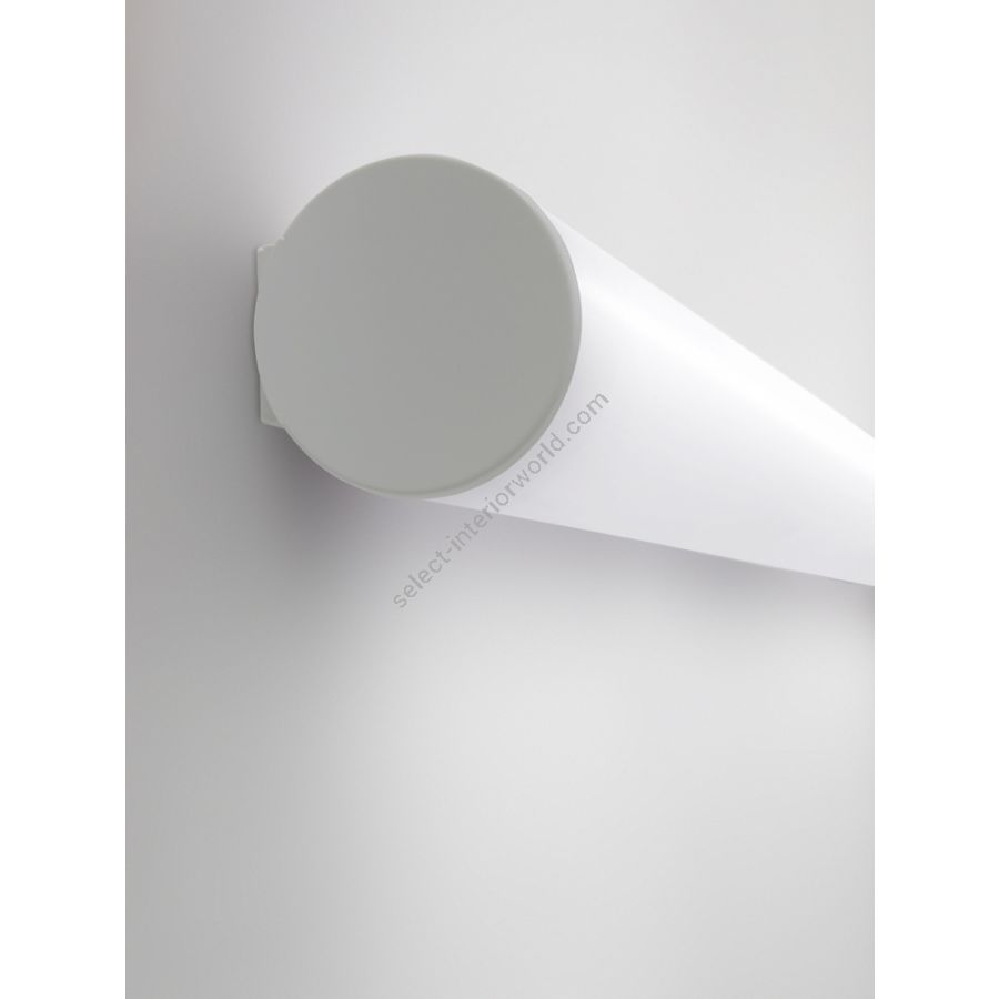 Die Kollektion umfasst zwei Modelle, die in Wirklichkeit drei sind: eines dient sowohl als Deckenleuchte als auch als Wandleuchte, das andere ist eine Pendelleuchte. Der zylindrische Schirm hat einen Durchmesser von 8 cm, besteht aus opalfarbenem Polycarbonat und ist in drei Längen erhältlich: 60, 90 und 120 cm. Die Struktur besteht aus strukturiert lackiertem Eisen in zwei Ausführungen zur Auswahl: Weiß und Silber. Die Lichtquelle ist ein integrierter LED-Streifen 230 V 2700 K CRI>80, dimmbar über TRIAC, mit Leistung und Lichtleistung abhängig von der Länge der Lampe: 14 W 1350 lm bei 60 cm Länge; 22 W 2160 lm bei 90 cm und 30,8 W 2970 lm bei 120 cm Länge.