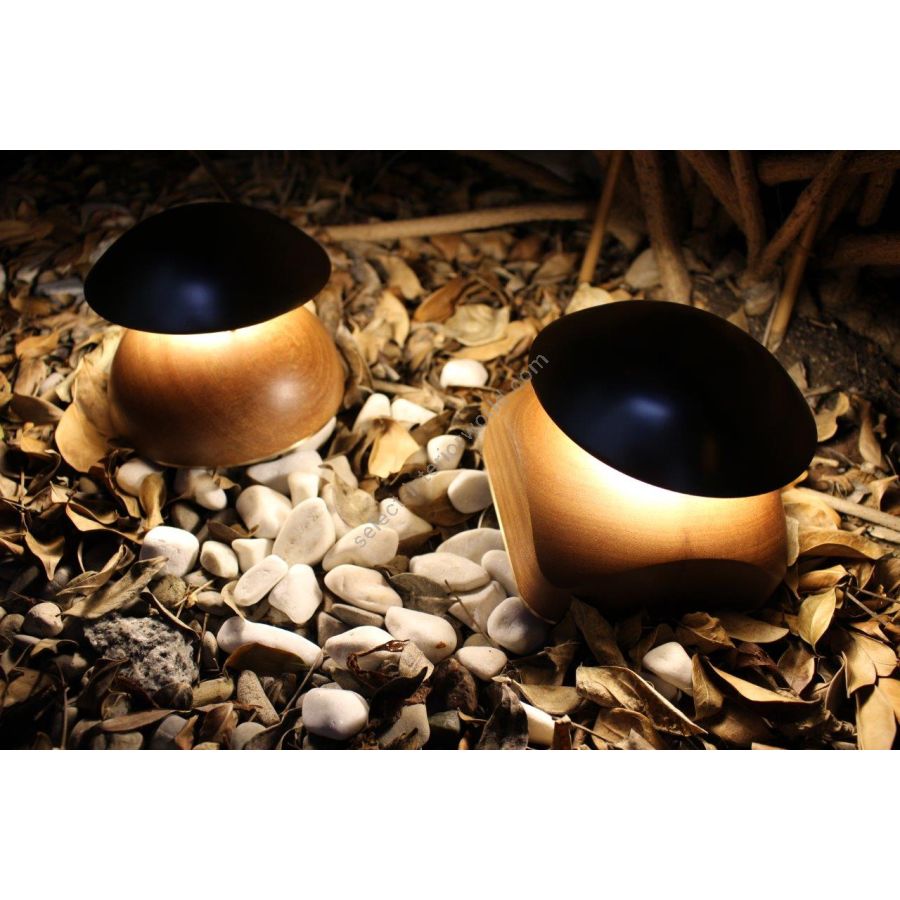 Die Kollektion BELL besteht aus einem einzigen Modell mit abgerundetem Sockel. Es hat die Schutzart IP45, was es optimal für den Einsatz im Freien unter Dach macht. Der Fuß besteht aus Massivholz eines tropischen Baumes namens Iroko, ideal für den Außenbereich, da es hart, stabil, unempfindlich gegen Insekten und wetterbeständig ist. Der Schirm besteht aus matt lackiertem poliertem Messing mit einem kompakten unteren Diffusor aus Polypropylen. Die Lichtquelle ist eine integrierte LED 1,3 W 150 lm 2700 K CRI>90, dimmbar dank eines am Sockel angebrachten „Ein/Aus/Touch-Dimmer“-Schalters. Sein Lithium-Polymer-Akku ist über USB wiederaufladbar, das Aufladen dauert etwa 5 Stunden und bietet eine Autonomie von etwa 8 Stunden. Das USB-Ladegerät ist nicht im Lieferumfang enthalten, aber ALMA Light kann die Ladegeräte separat liefern, in einer Einzelversion zum Laden einer Lampe oder als Mehrfachladegerät für mehrere Leuchten gleichzeitig.