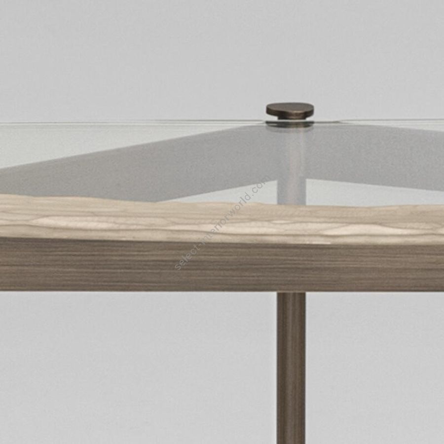 Metallstruktur mit gebürstetem, brüniertem Messing-Finish. Platte aus 12 mm dickem, extra klarem Glas, gravierter Rand mit Miage-Finish.