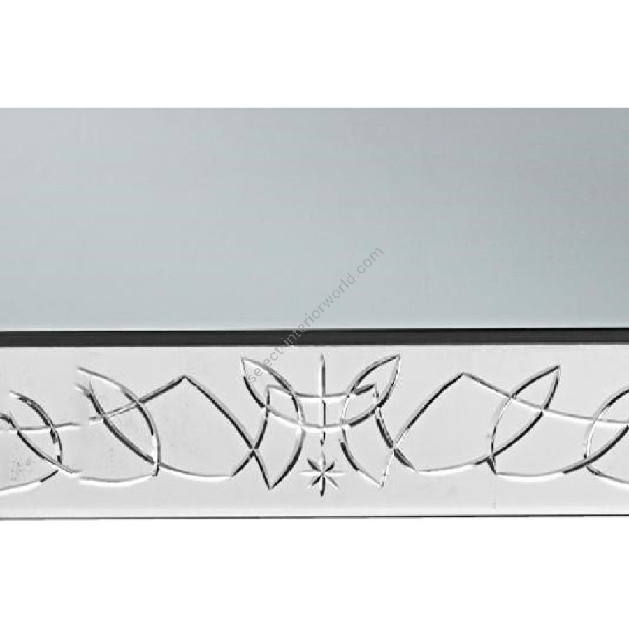 Platte aus mittelalterlichem, verspiegeltem Glas mit abgerundeten Ecken. Rahmen aus graviertem Glas mit mittelalterlicher Verspiegelung.