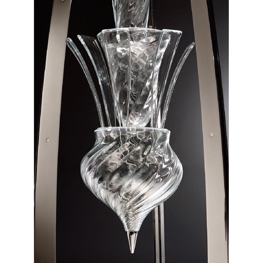Handgefertigtes geformtes Mittelteil aus geblasenem Muranoglas, oben mit Stahldraht aufgehängt. Sockel aus istrischem Stein.