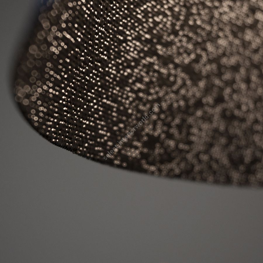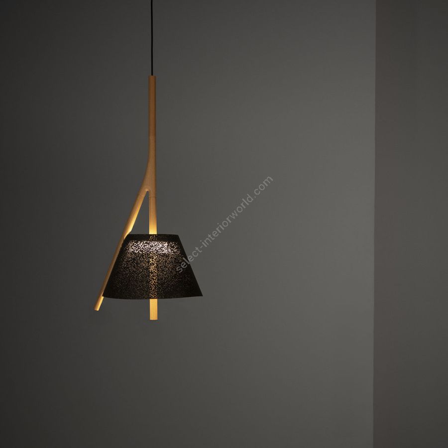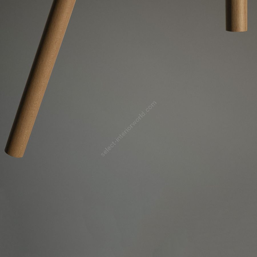 Cambo besteht aus einer Buchenholzstruktur mit einem Lack auf Wasserbasis, der es ermöglicht, das Material in seiner natürlichsten Form zu zeigen. Bei dieser besonderen Struktur wird das lackierte Edelstahlgeflecht in den Lampenschirm eingebracht, der die integrierte LED-Lichtquelle überwacht.