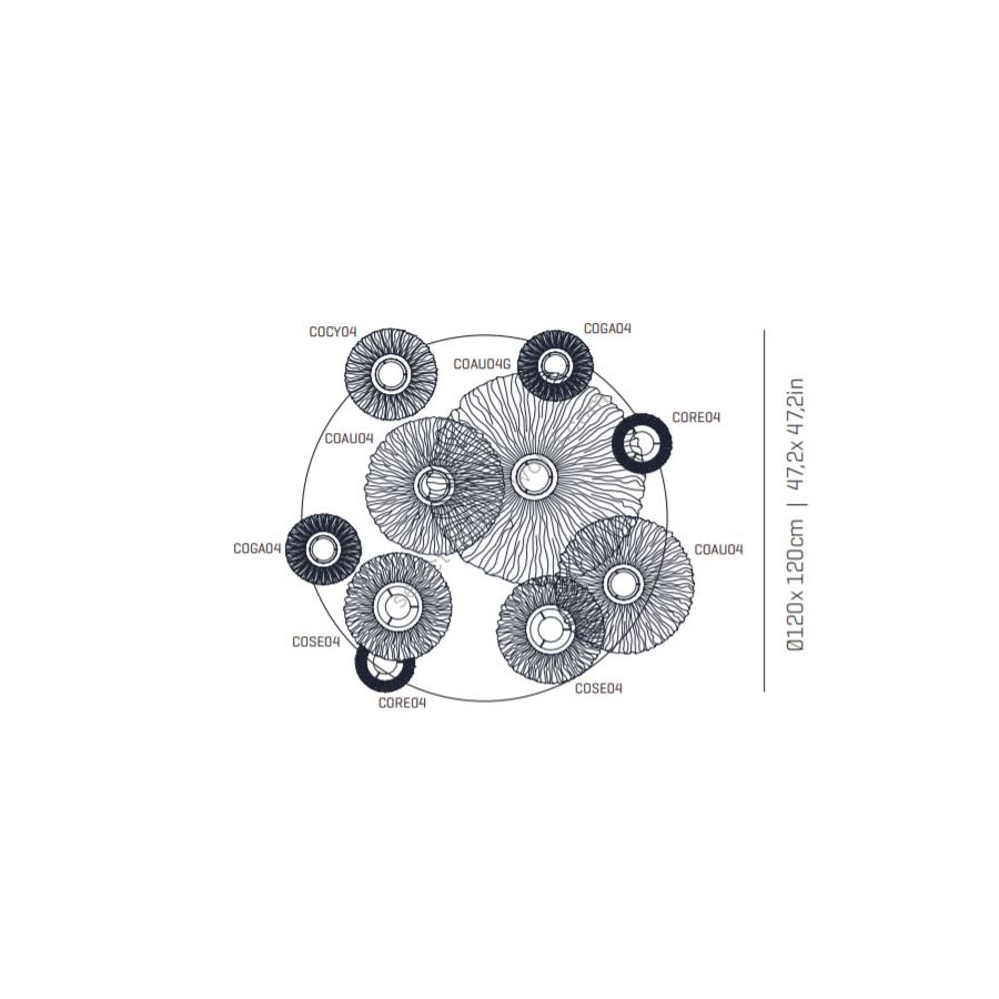 Organisch wirkende Pendelleuchten, inspiriert von der Schönheit der Korallenriffe. Die Modelle der Kollektion eignen sich mit ihren unterschiedlichen Formen und der Eleganz ihrer Linien ideal zur Beleuchtung jeder Art von Raum. Der natürliche Charme ihres handgefertigten, lackierten Edelstahlgeflechtvolumens wird verstärkt, wenn sie zu harmonischen großen Kronleuchtern kombiniert werden.