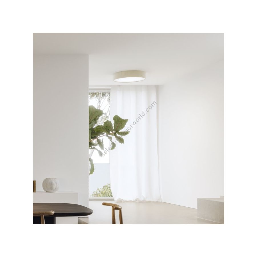 A fabric-wrapped disc blends the elegance of the company’s tradition with the latest lighting technology, giving rise to a collection where form makes way for detail, and light takes center stage.