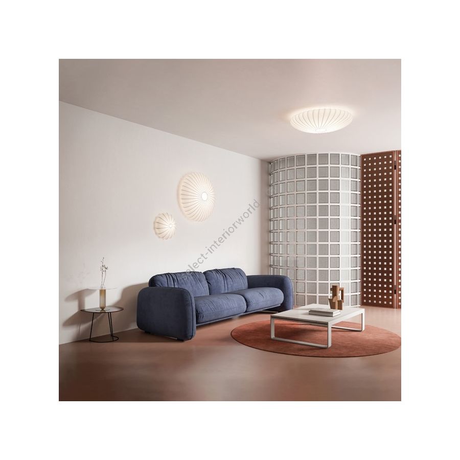 Some design lamps transcend time, remaining as beautiful and contemporary today as when they were first created. Muse is one of them – an architectural element that enhances walls and ceilings. Its metal structure, reminiscent of flower petals, is wrapped in an elastic, interchangeable fabric, blending elegance with versatility.