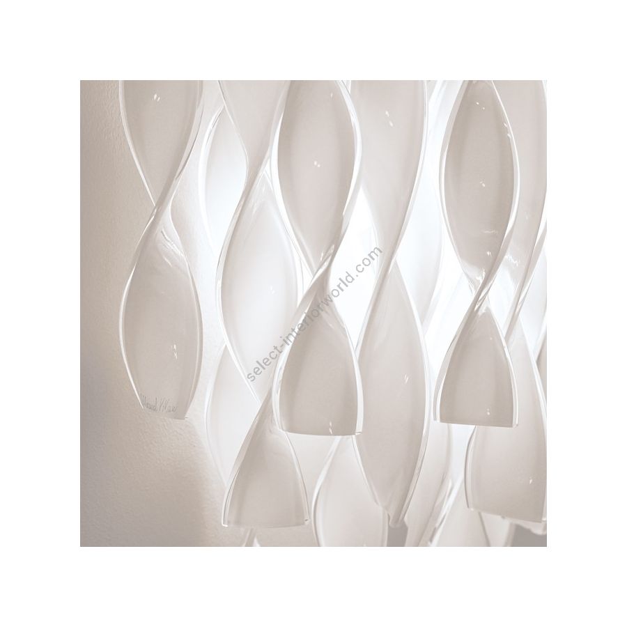 Masterful glass craftsmanship shines through in finely crafted pieces, meticulously assembled to create a fluid play of light and reflection. Blending tradition and design, each element exudes unique charm. Featuring suspensions, wall, and ceiling lamps, the Aura collection brings refined, timeless elegance to any space, where light takes center stage.