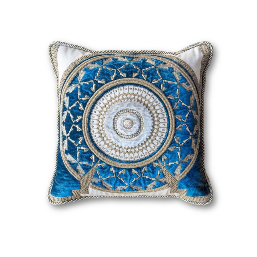 Unsere Couture-Kissen werden individuell angefertigt und auf Bestellung von Hand bestickt. Sie können mit feinem Gold- oder Silberseidenfaden gefertigt und mit Süßwasserperlen und Halbedelsteinen verziert werden.