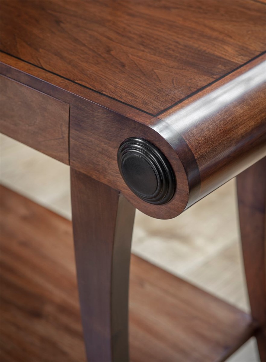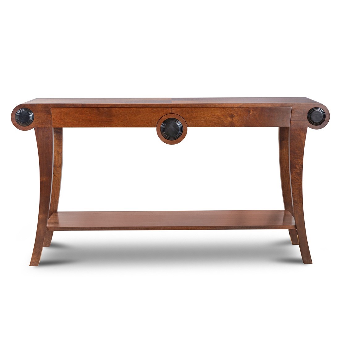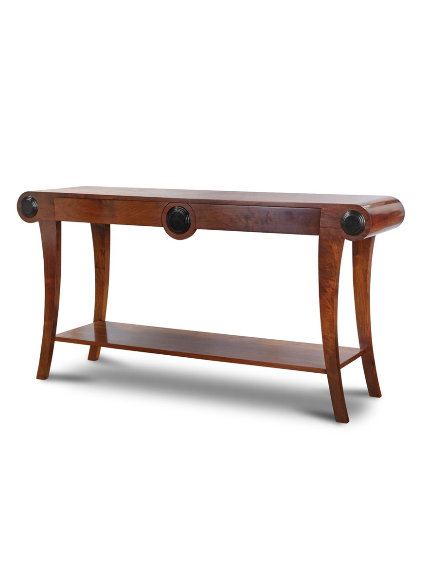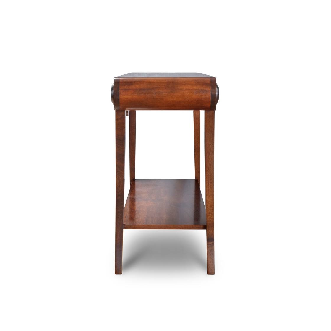 Crafted from solid walnut, the  Art Deco inspired Duke console table is an example of fine English furniture at its very best. The graceful legs and exceptional finish deliver a statement piece for any setting.