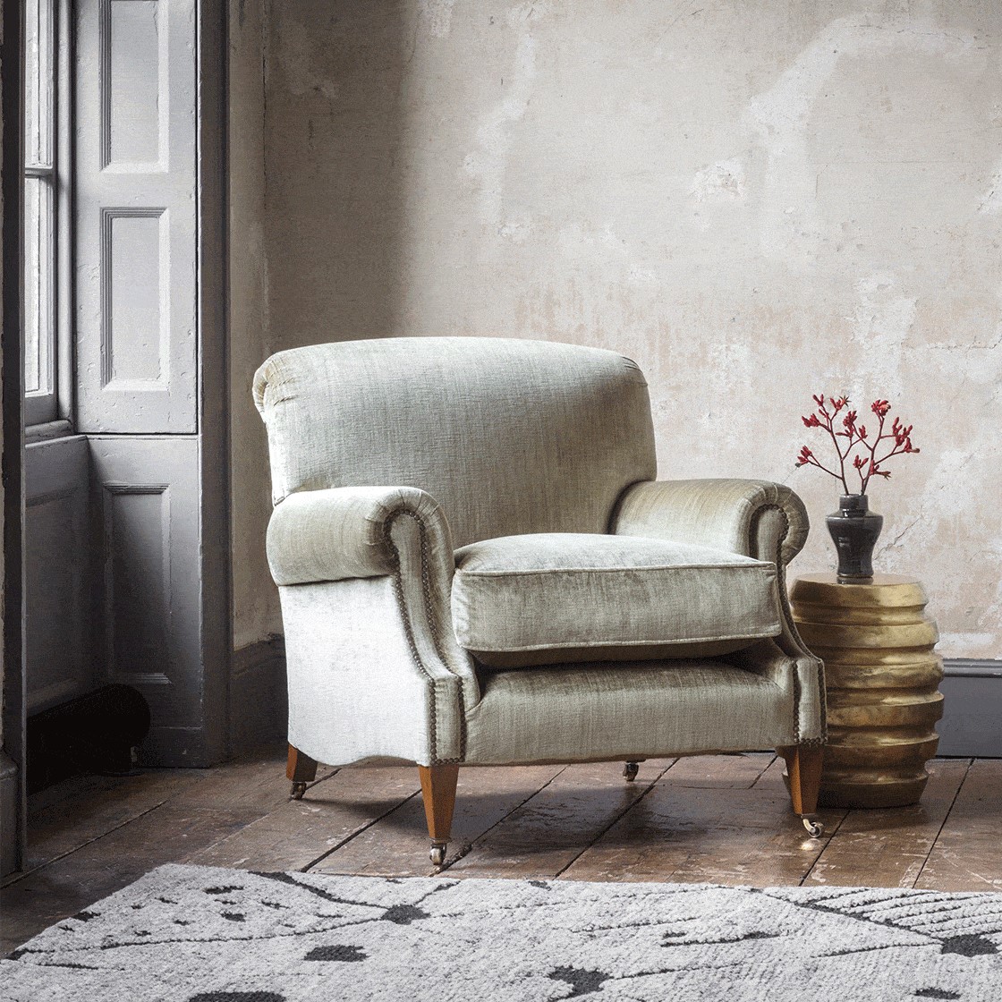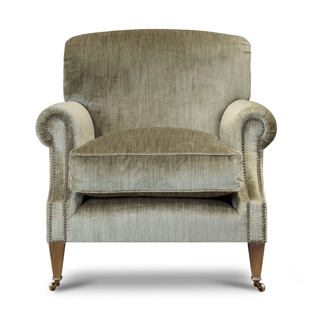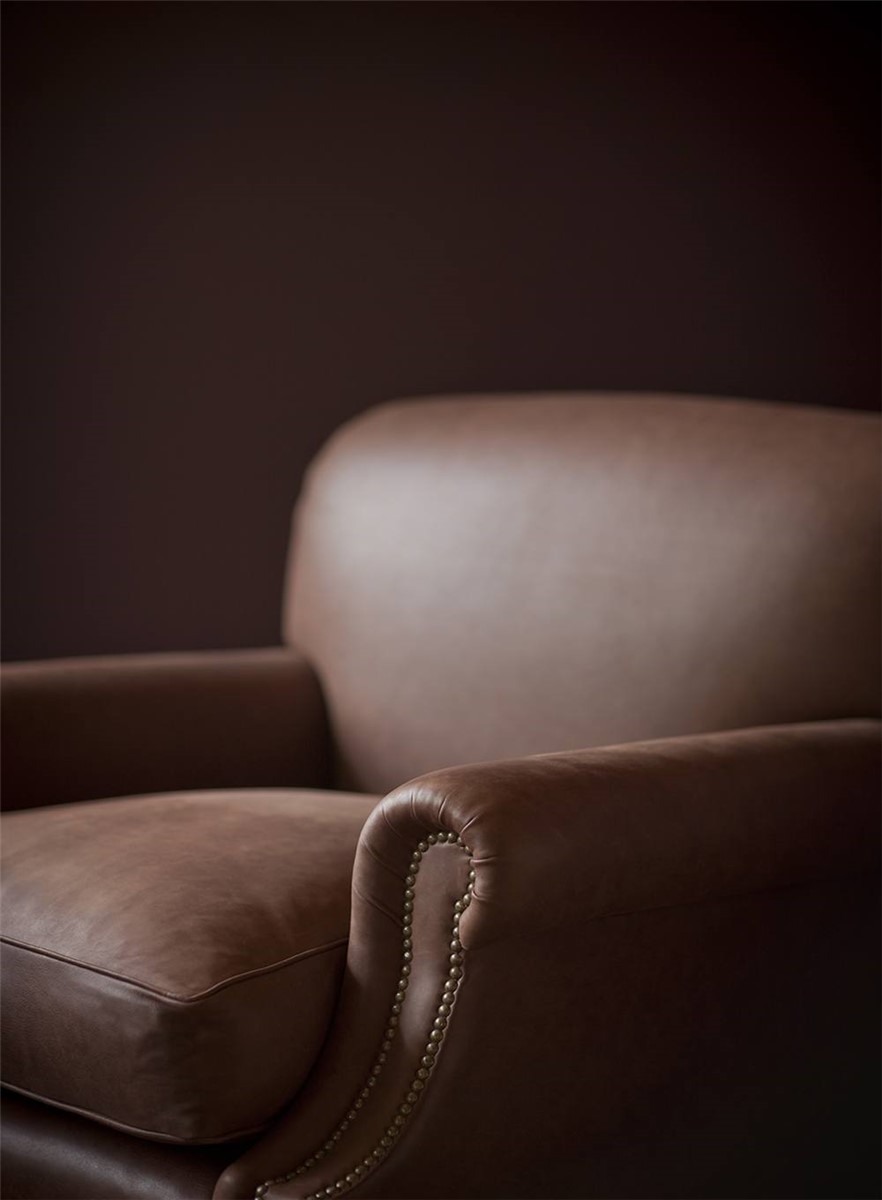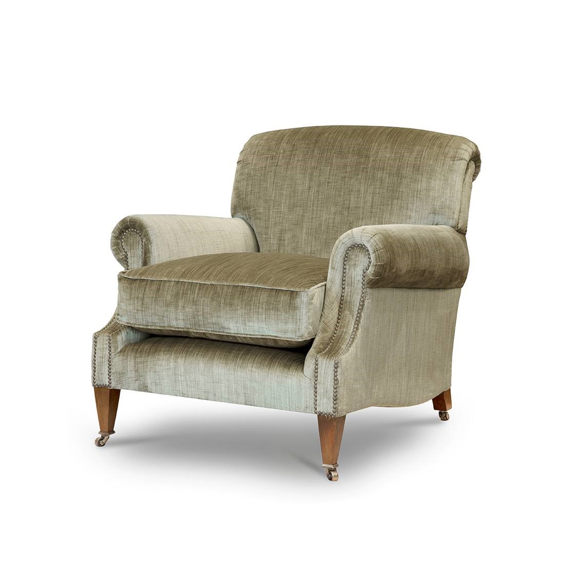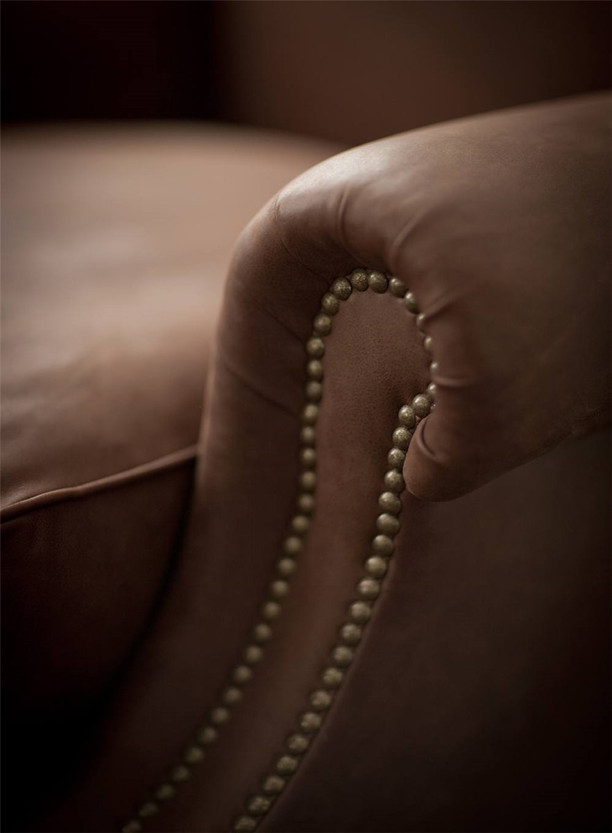 Drawing on mid-Victorian designs, we created this bold but graceful, and genuinely comfortable, chair that can be worked either with or without decorative nailing.