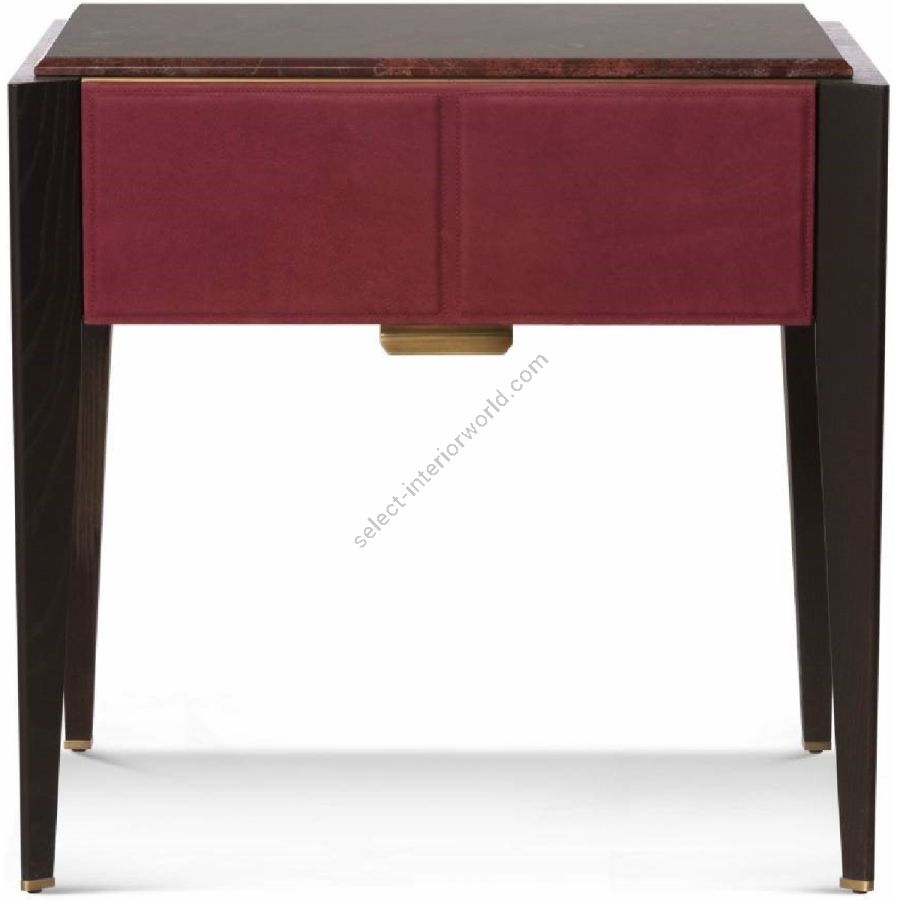 Dieser elegante Nachttisch vereint modernes Design mit exquisiter Handwerkskunst. Gefertigt aus Sperrholz mit Elementen aus Eschenholz, präsentiert er sich in einem urbanen Schwarz-Finish für eine zeitgemäße Ästhetik. Die Schublade ist luxuriös mit Nubukleder bezogen und das Innere aus grau gefärbtem Ahorn veredelt, was einen Hauch von Raffinesse verleiht. Der Griff und die Endfüße aus matt gebürstetem hellbronzenem Messing setzen stilvolle Akzente, während die Red-Lepanto-Marmorplatte für eine edle und zeitlose Optik sorgt. Ein Design von Ezio Bellotti, das Funktionalität und luxuriösen Stil harmonisch vereint.