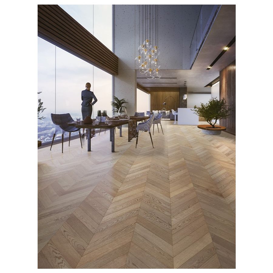 Oak Naturalizzato ist ein heller Holzboden mit einem sanften Farbton. Die Bodenstruktur wird durch die leichte Bürstenbehandlung hervorgehoben, der matte Effekt der Lackierung macht diese natürliche Eiche zur richtigen Wahl für alle, die ihre Umgebungen mit einem modernen, nordischen, aber auch klassischen Geschmack einrichten möchten. Zusätzlich zu den ästhetischen Eigenschaften erhält der Holzboden dank des Lackierverfahrens auf Wasserbasis Härte und Verschleißfestigkeit für einen langlebigen Boden. Vorgefertigt, mit 2 oder 3 Schichten, ist er in verschiedenen Größen erhältlich und kann zufällig oder im Fischgrätenmuster sowie mit Fußbodenheizungssystemen verlegt werden.