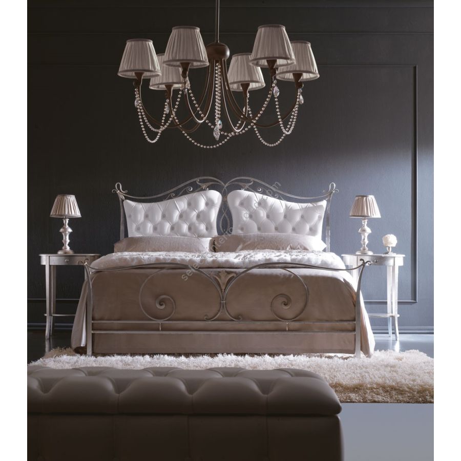 Massive, geschmiedete und handgeschmiedete Eisenstruktur mit geschmiedeten und handgeschmiedeten, lasergeschnittenen Details. Gepolstertes Kopfteil in verschiedenen Dichten und mit Stoff, Leder oder Öko-Leder bezogen.