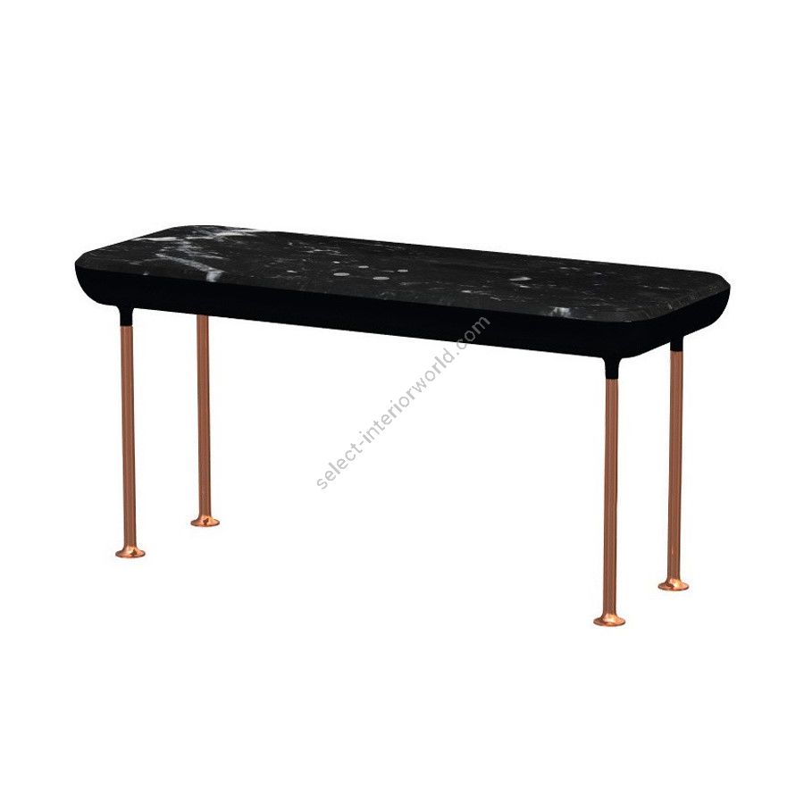 Tisch mit Struktur aus Kupfer-Aluminium und Platte aus Nero-Marquinia-Marmor.