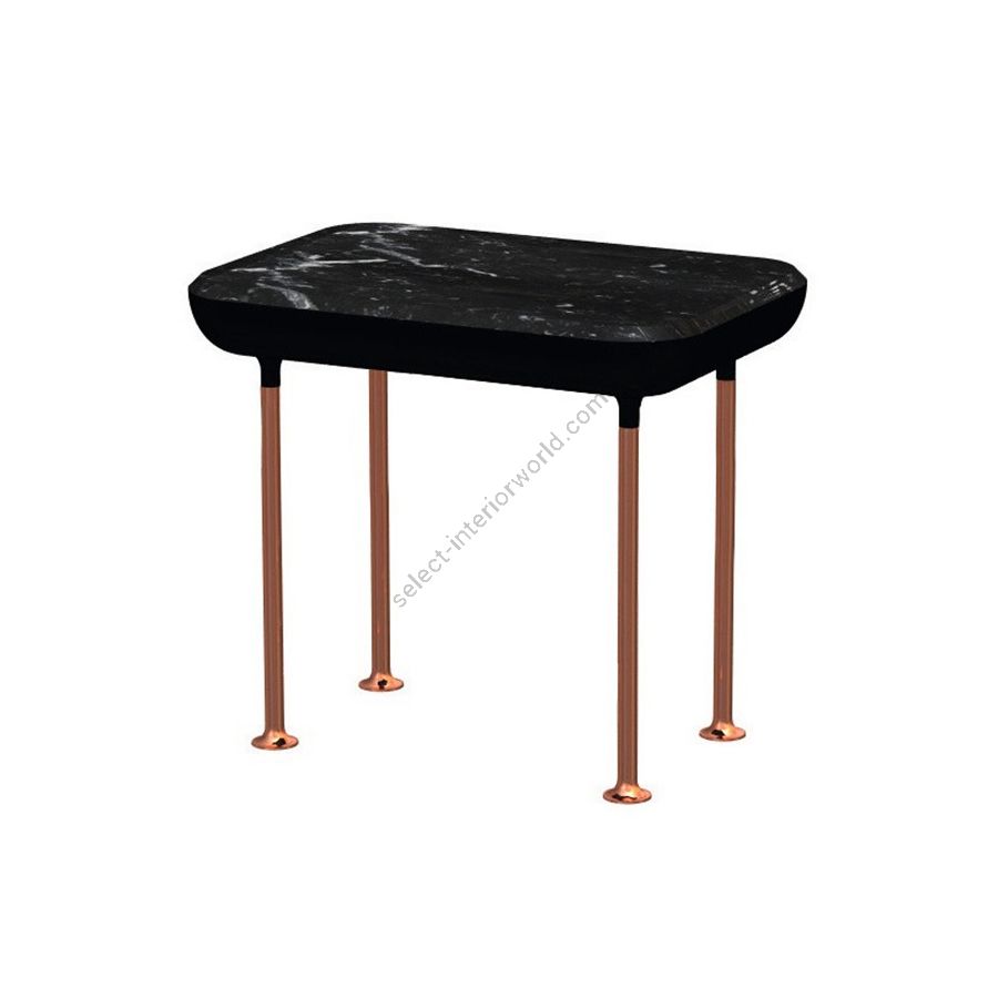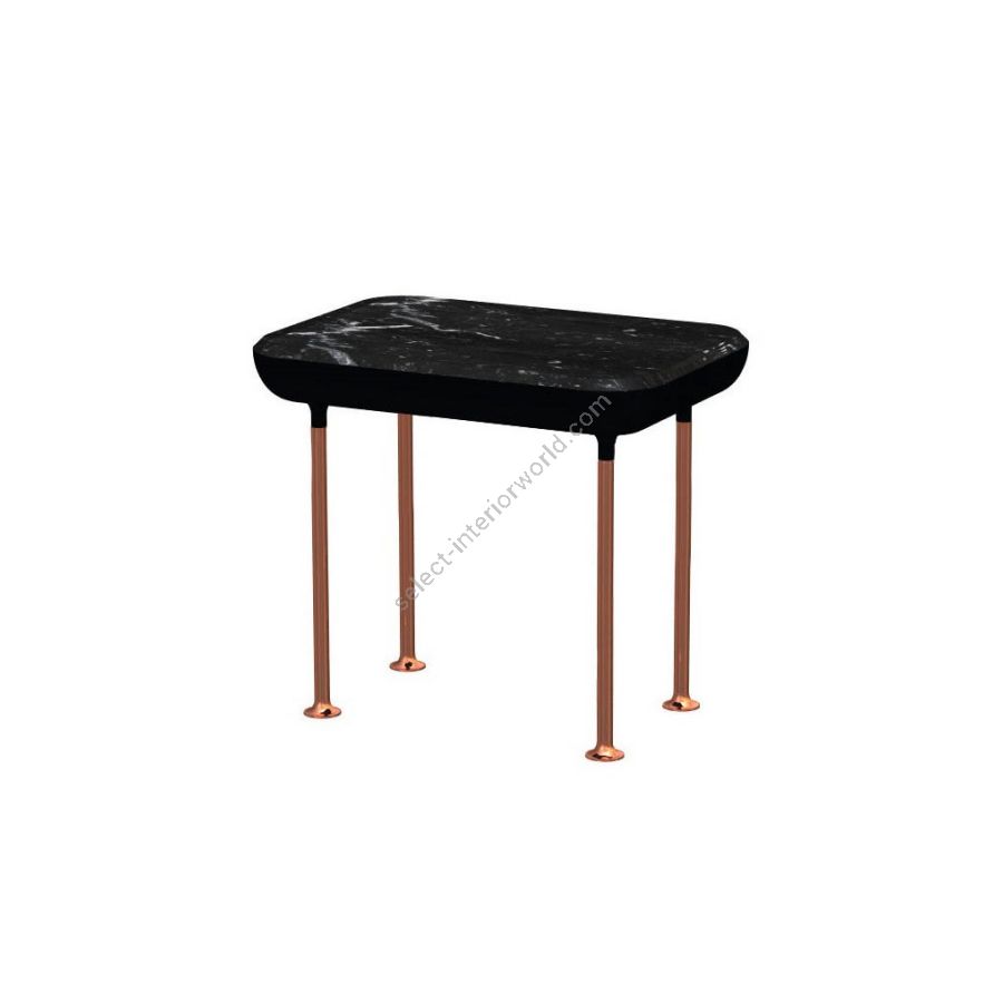 Table with copper aluminium structure and top in nero marquinia marble.