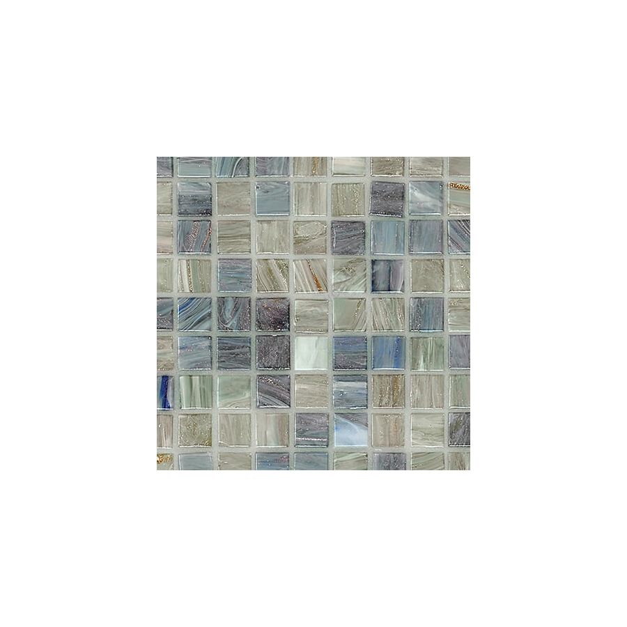 Glass mosaic composed of beveled, randomly arranged square tesserae. The oro bis tesserae present in the blend are fashioned with silver and gold leaf between two protective layers of glass. When used in swimming pools and damp environments, platino must be used in place of oro bis bianco.