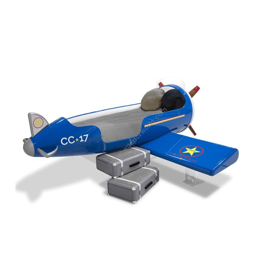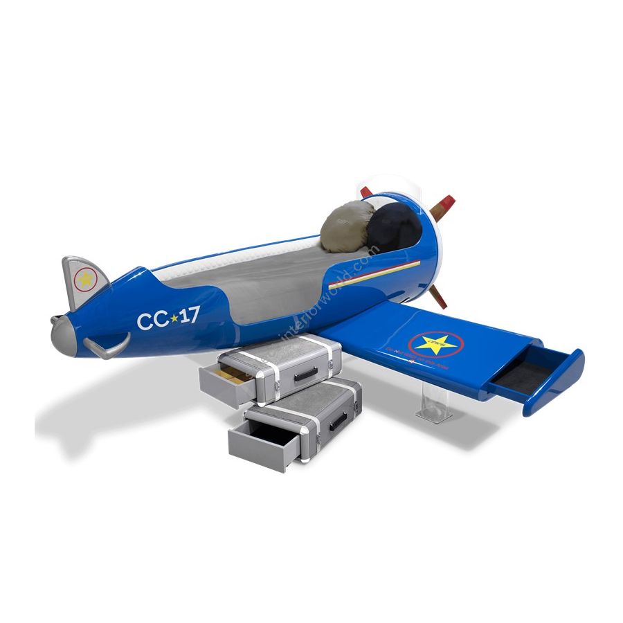 The Sky One Plane is an airplane-themed kids' bed with a playful design that it’s both didactic and fun. An airplane inspired decoration for kids’ rooms is perfect to encourage the little explorers to develop their creativity. The body is entirely made of fiberglass with glossy varnish applied and chrome plated finishes in the engine and wheels. The decorative suitcases include secret storage compartments and allow easy access to the bed. The Sky One Plane makes the crib-to-bed transition as painless as possible.